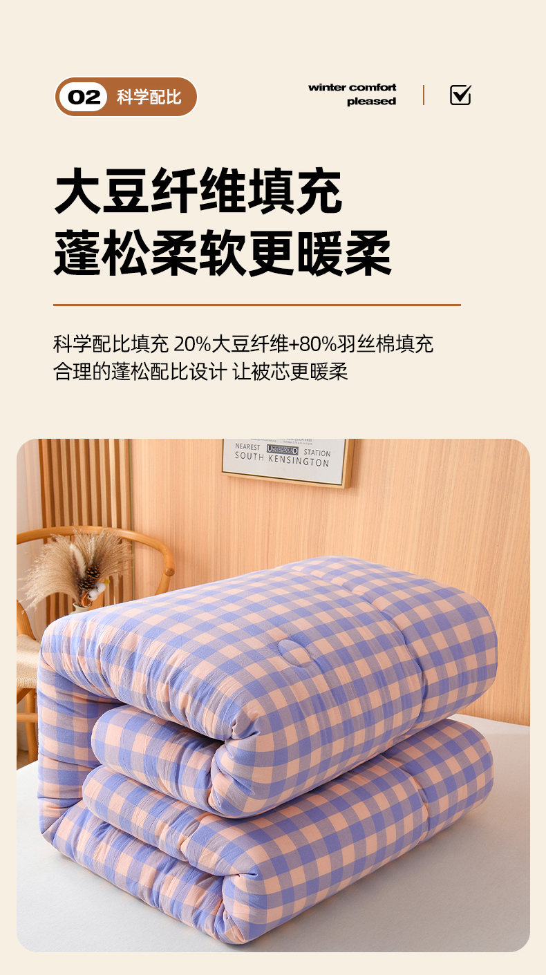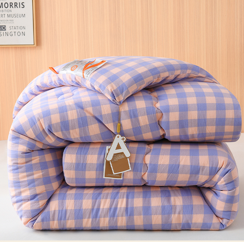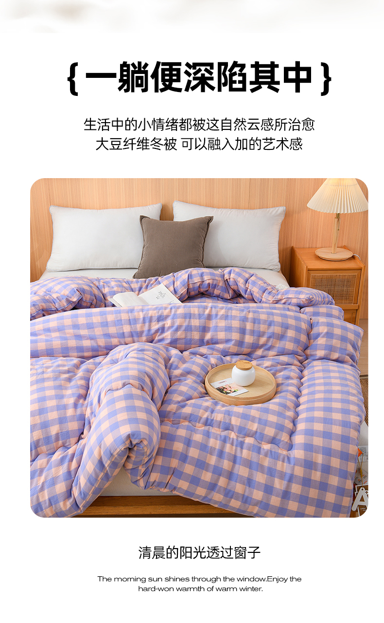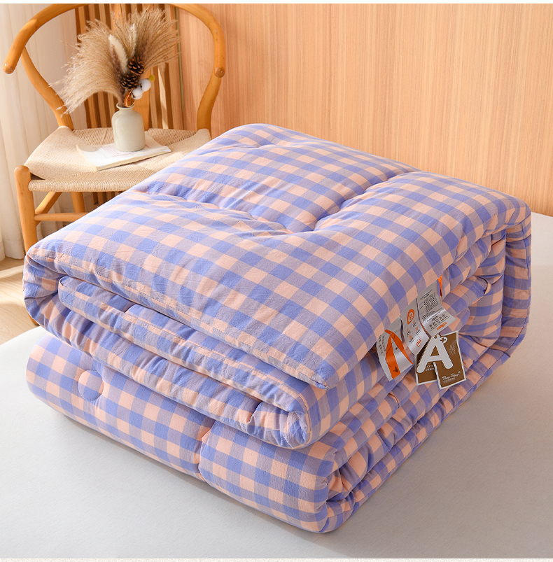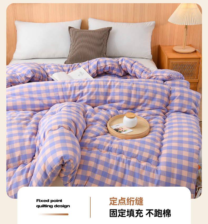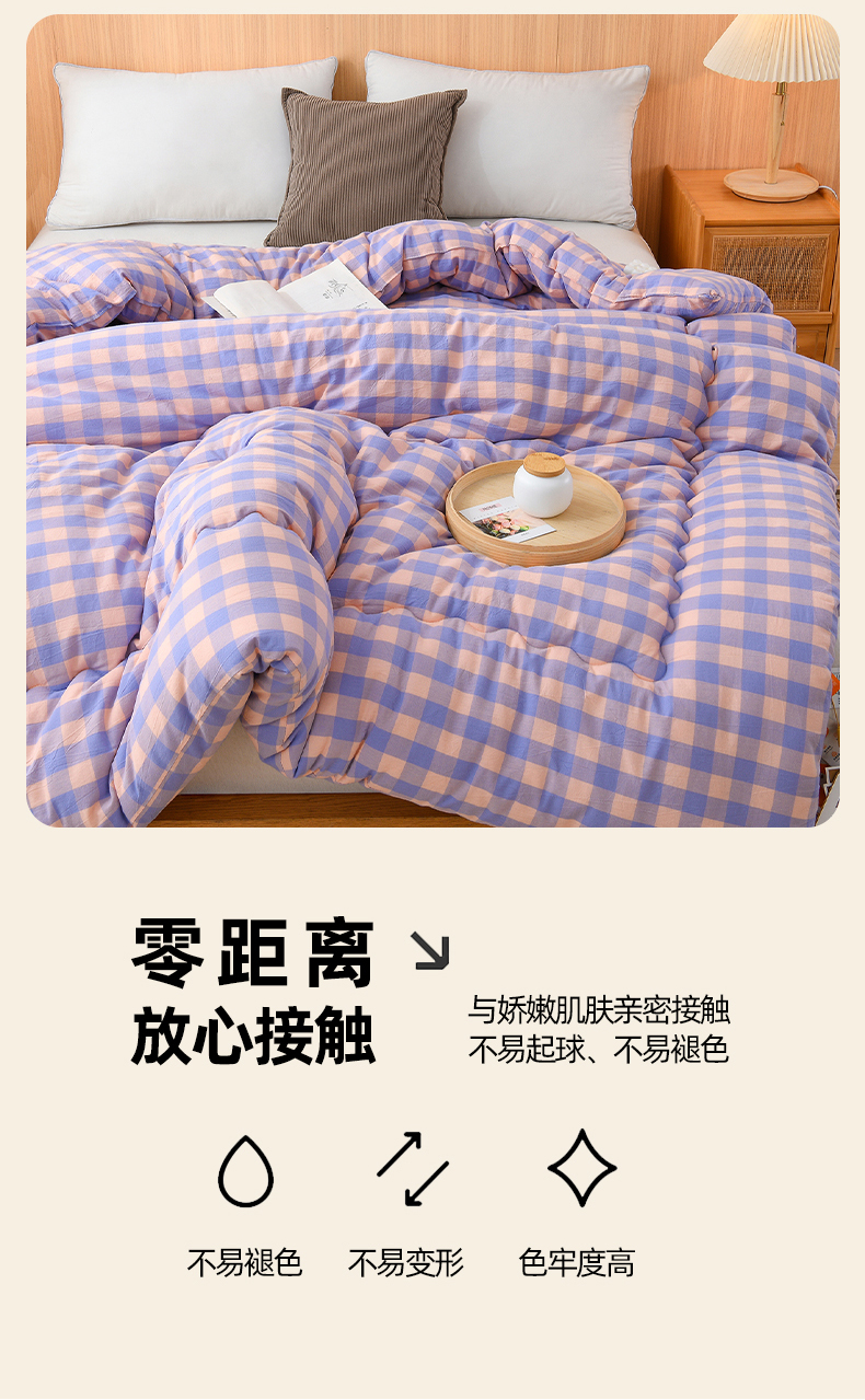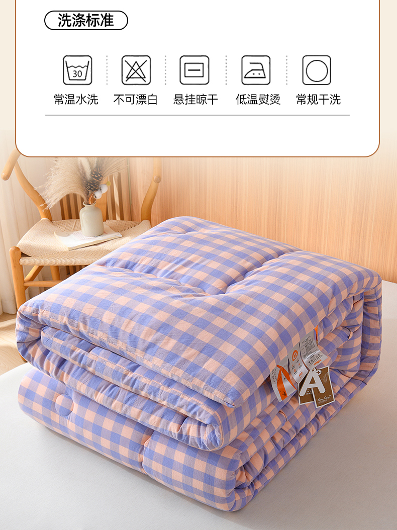 • 91家纺网 家纺一手货源 找家纺 易展2025新款无印水洗棉格子大豆冬被 格粉蓝
