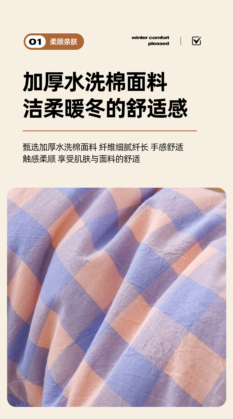 (总)易展2025新款无印水洗棉格子大豆冬被,格粉蓝,格浅绿,浅格橙,浅轻粉,轻夏绿,深橙格,湛靓蓝,缀纹黄
