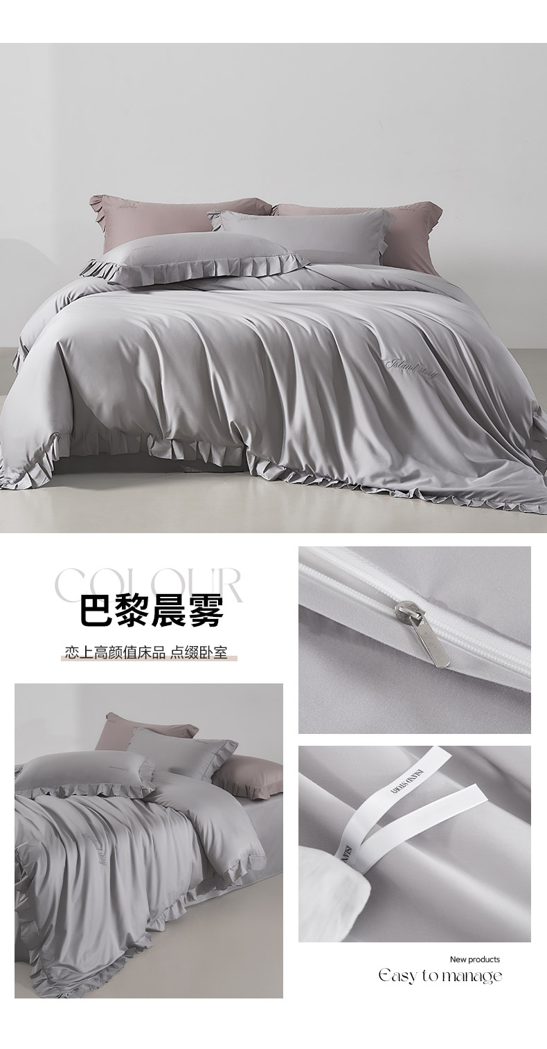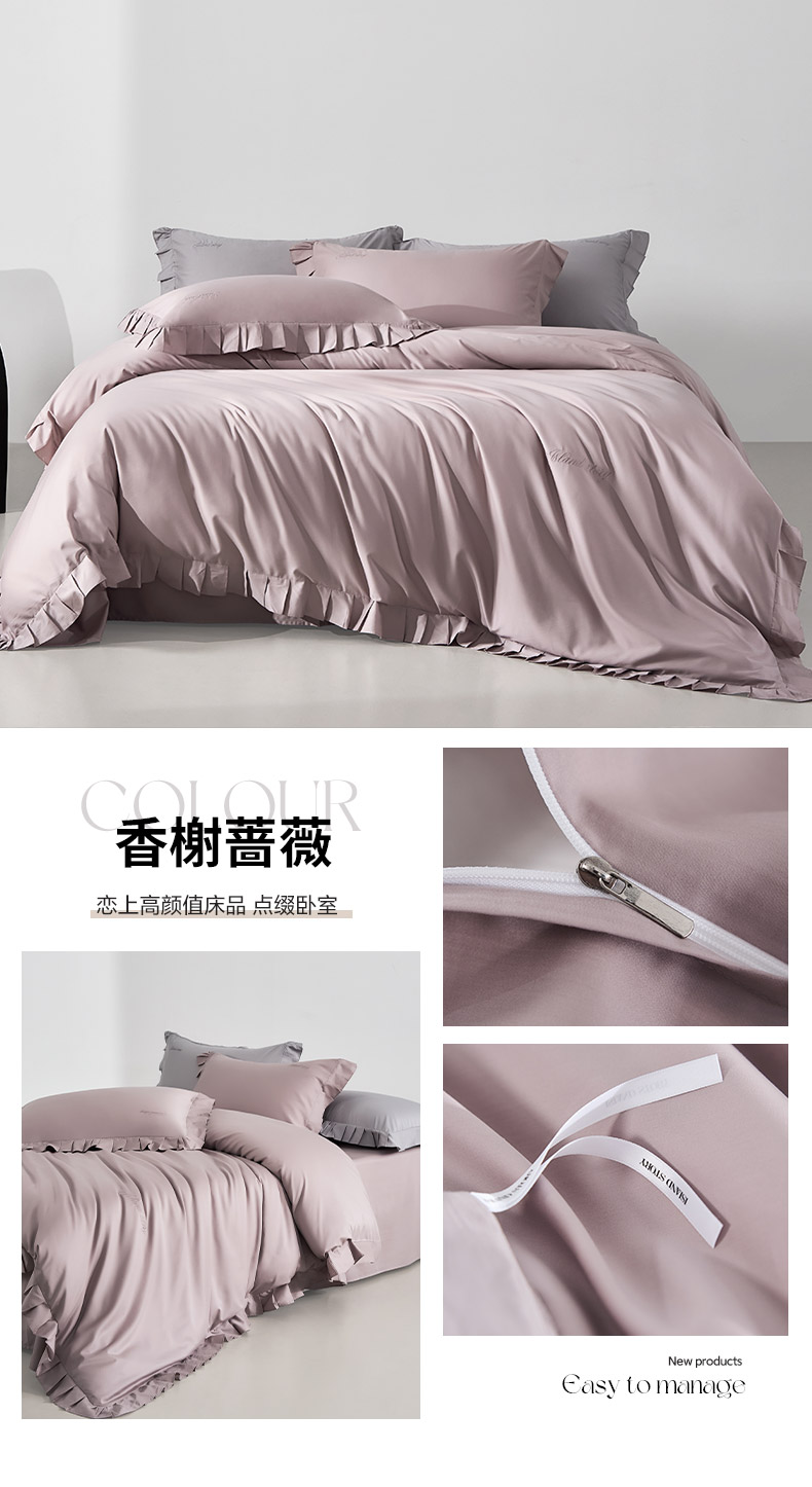 (总)轩和家居 2026新款高支贡缎长绒棉镂空四件套,茶杏色,琥珀橙,幻影灰,景泰蓝,莱姆绿,琉璃紫,鎏金色,落樱粉,慕斯棕,晴天蓝,松霜绿,夜阑黑