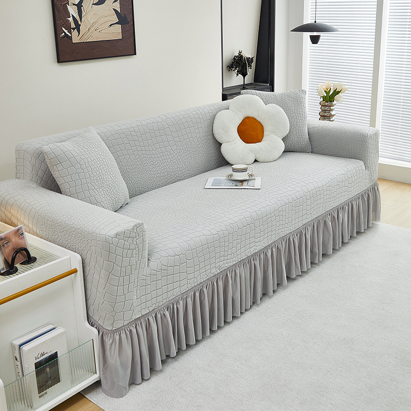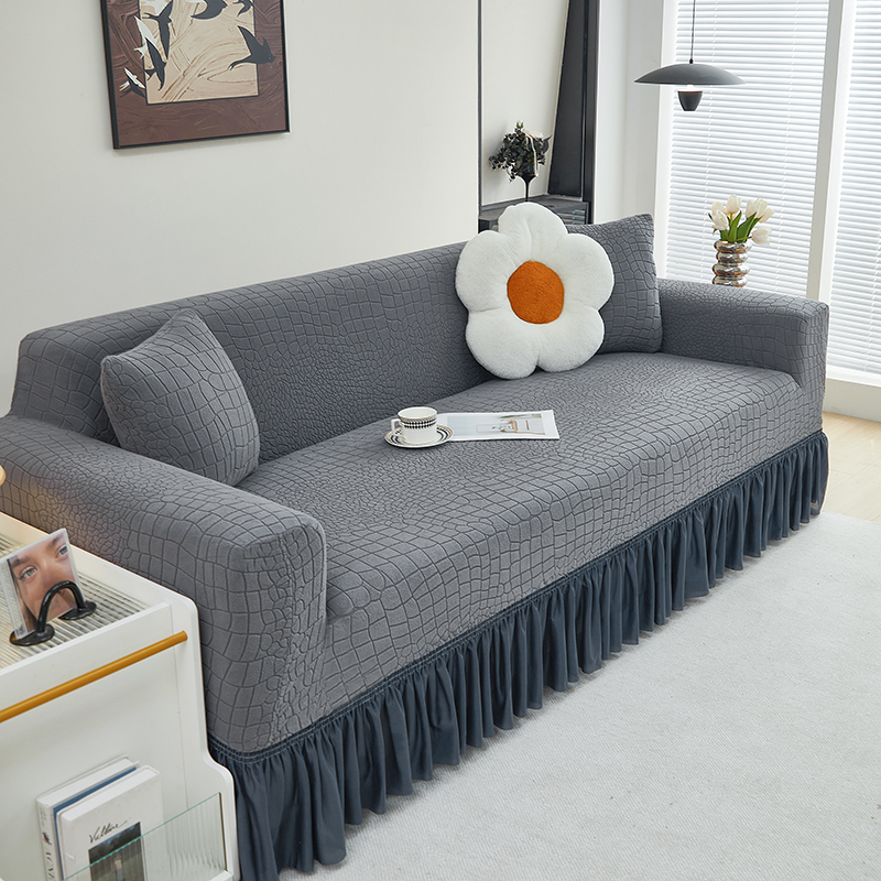 当前位置: 91家纺网 > 商品网购 > 居家布艺 > 坐垫/椅垫/沙发垫 > 沙发垫 > 丝绮鹿 2025新款雕花绒水立方沙发套裙边款(三人图) 深灰