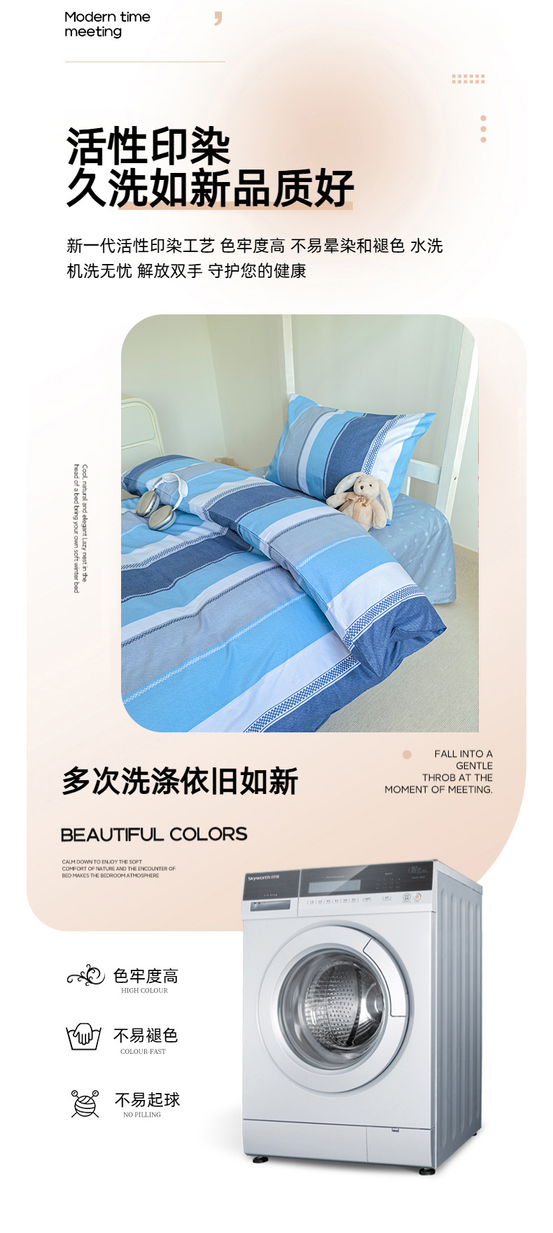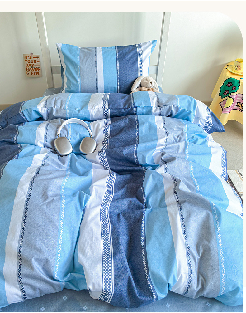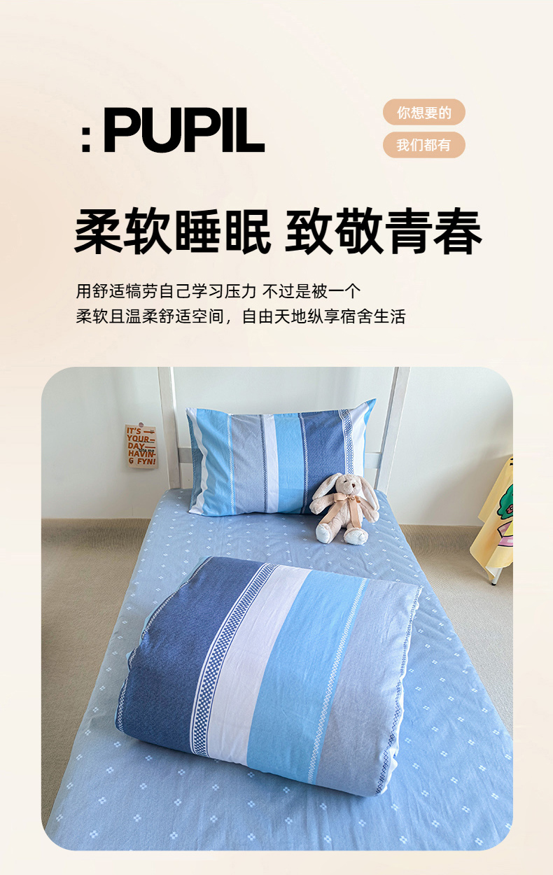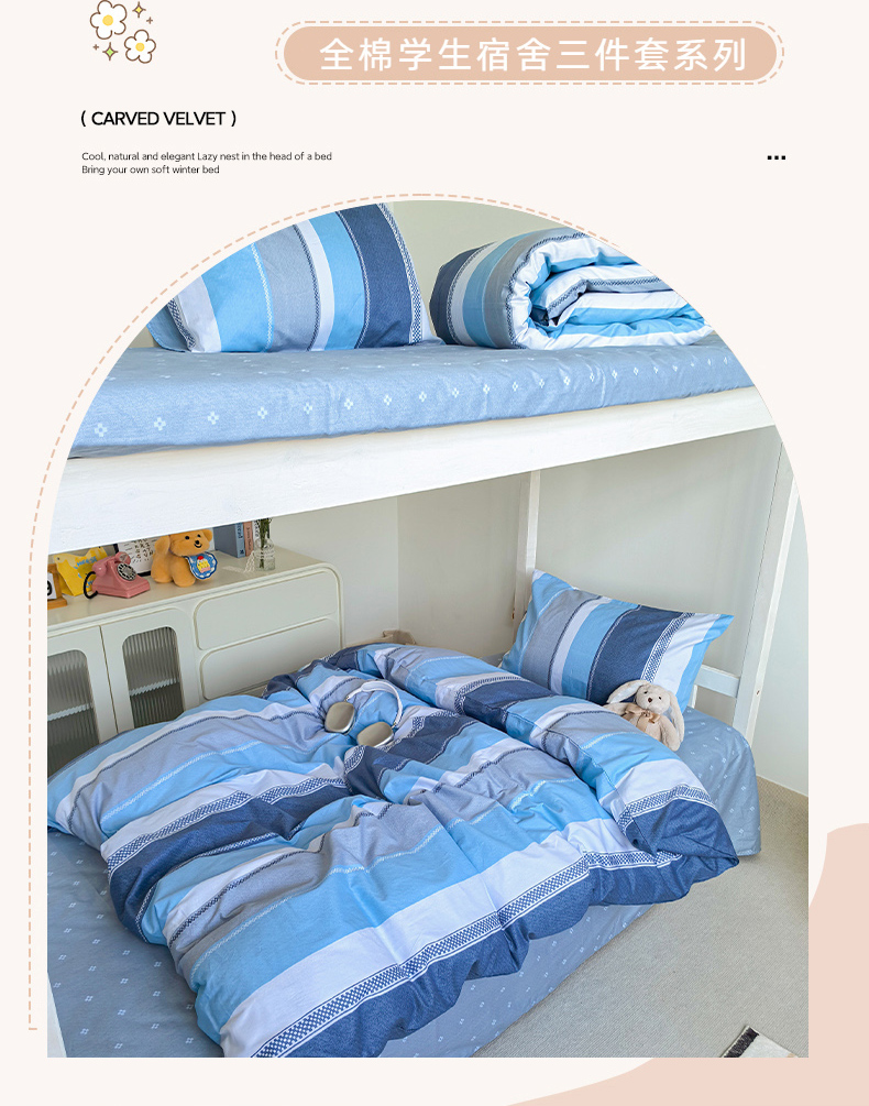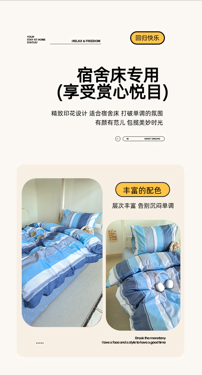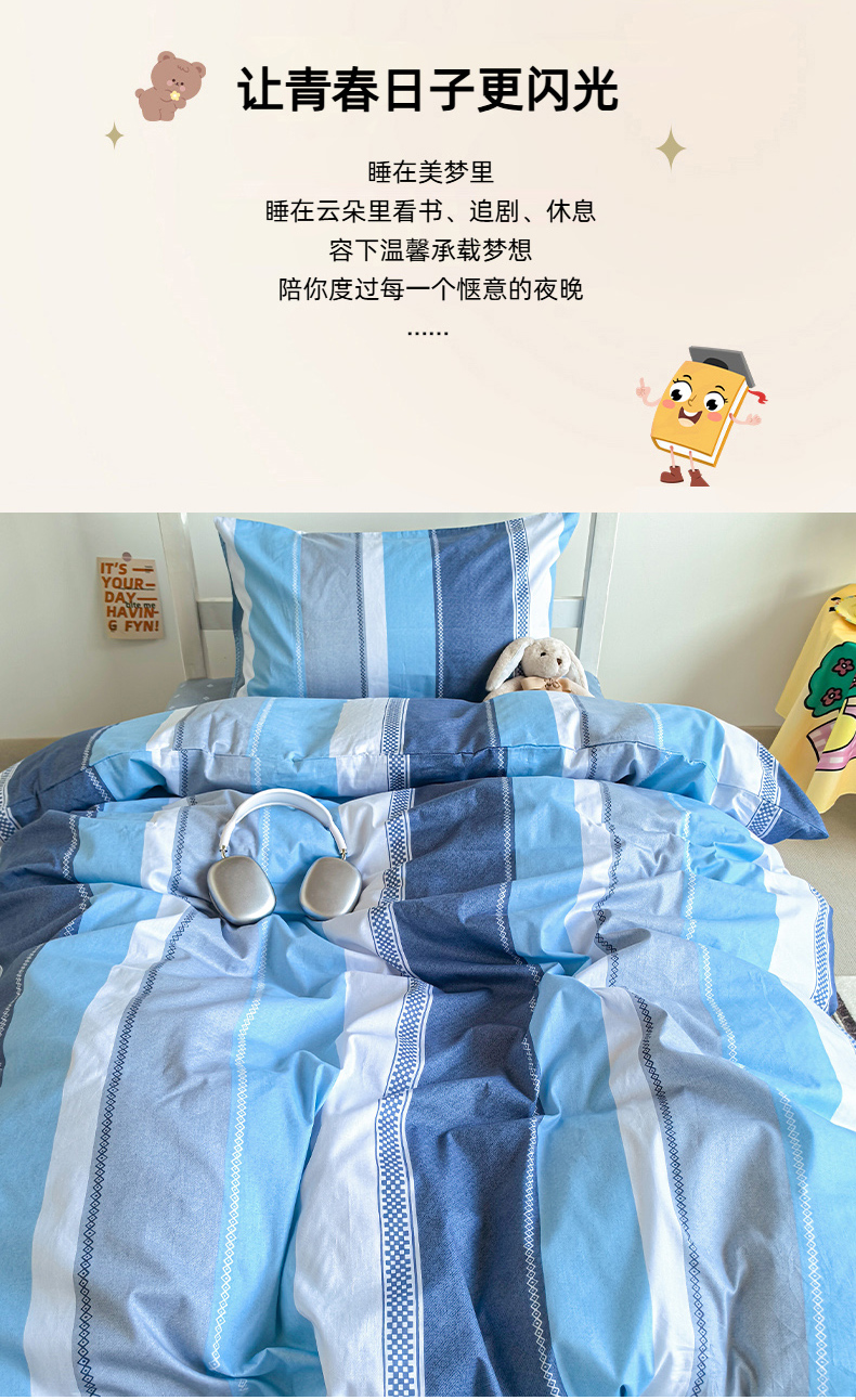 商品名称:锦彩家居 2025新款正宗13372全棉学生三件套全棉印花学生宿舍上下铺三件套(量大可定制价格可谈)提供买家秀 莫拉条纹