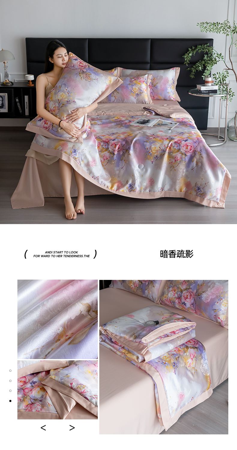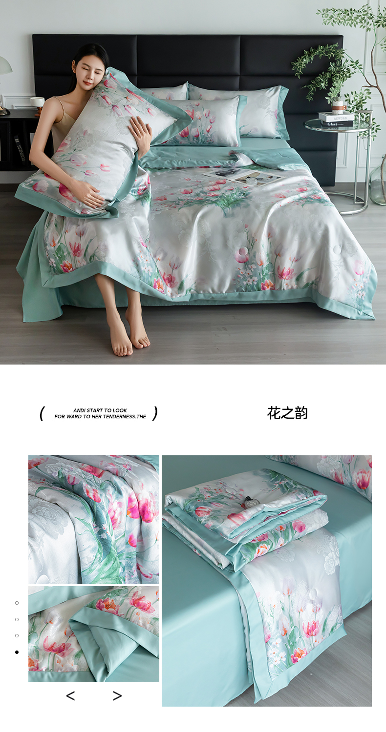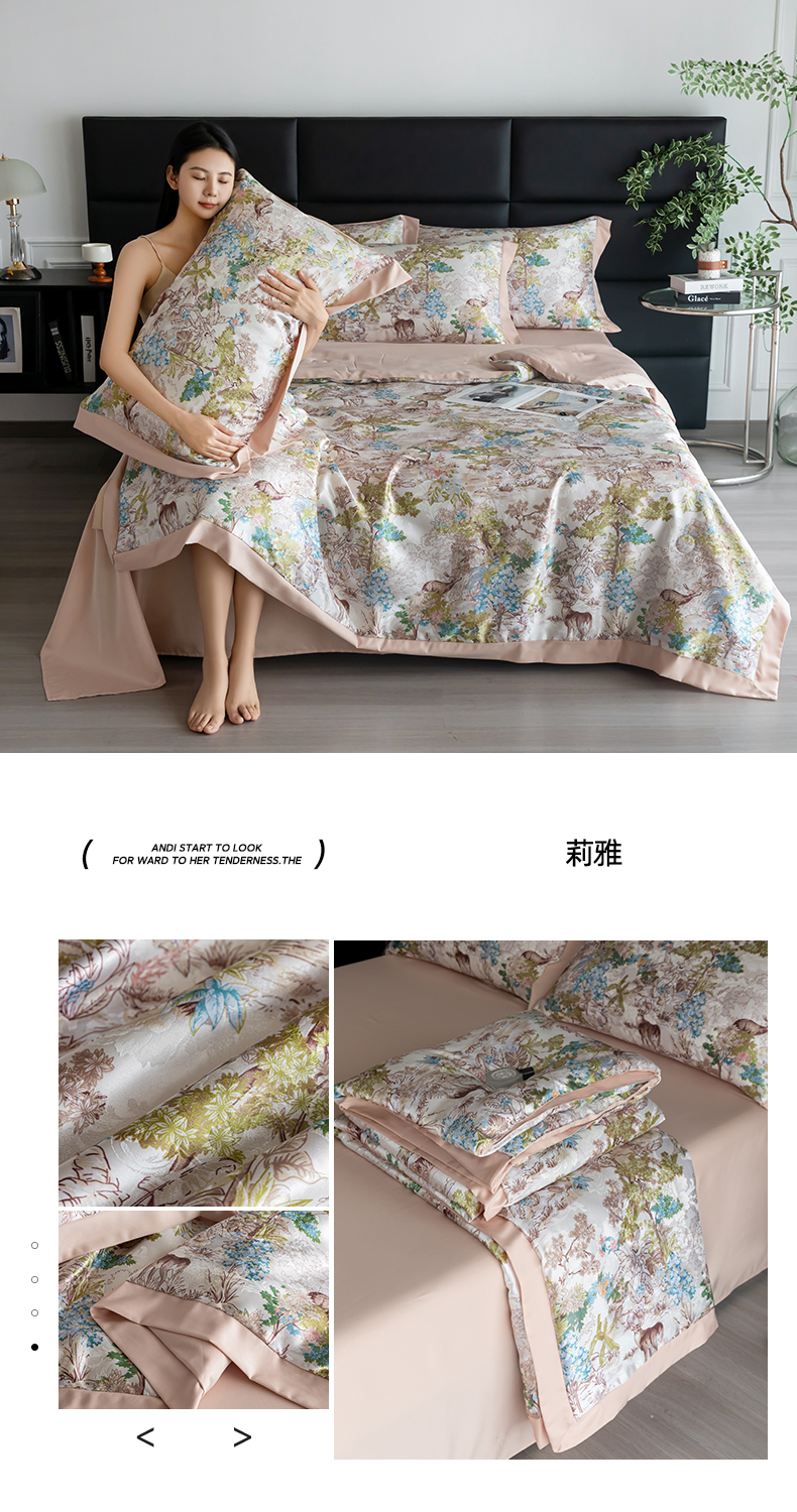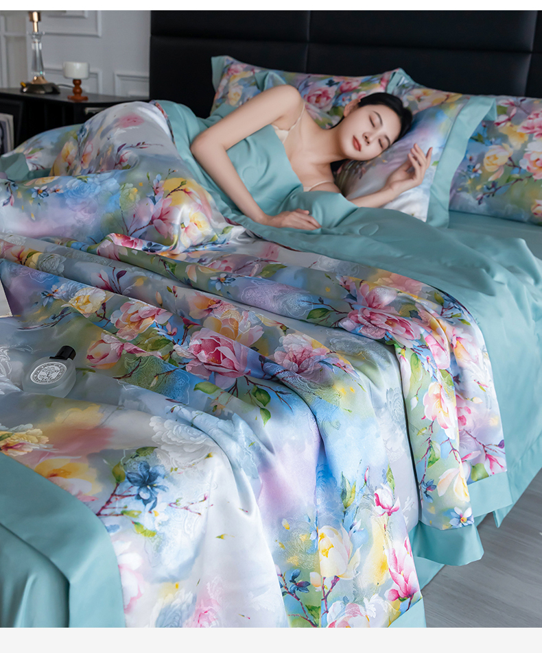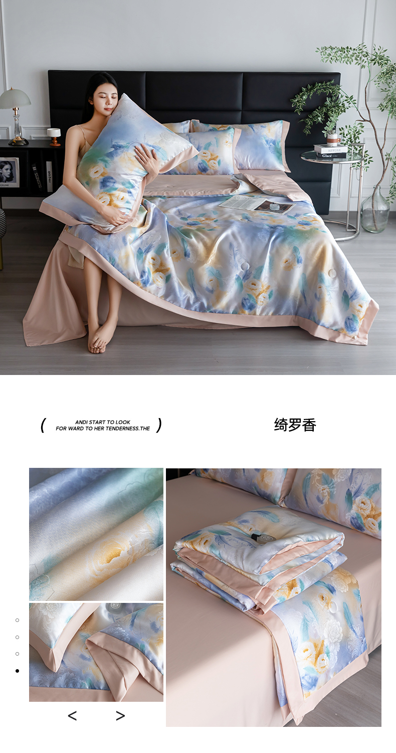 (总)七夜居 2025新款水洗真丝提花加印花贡缎提花夏被夏凉被空调被夏被四件套