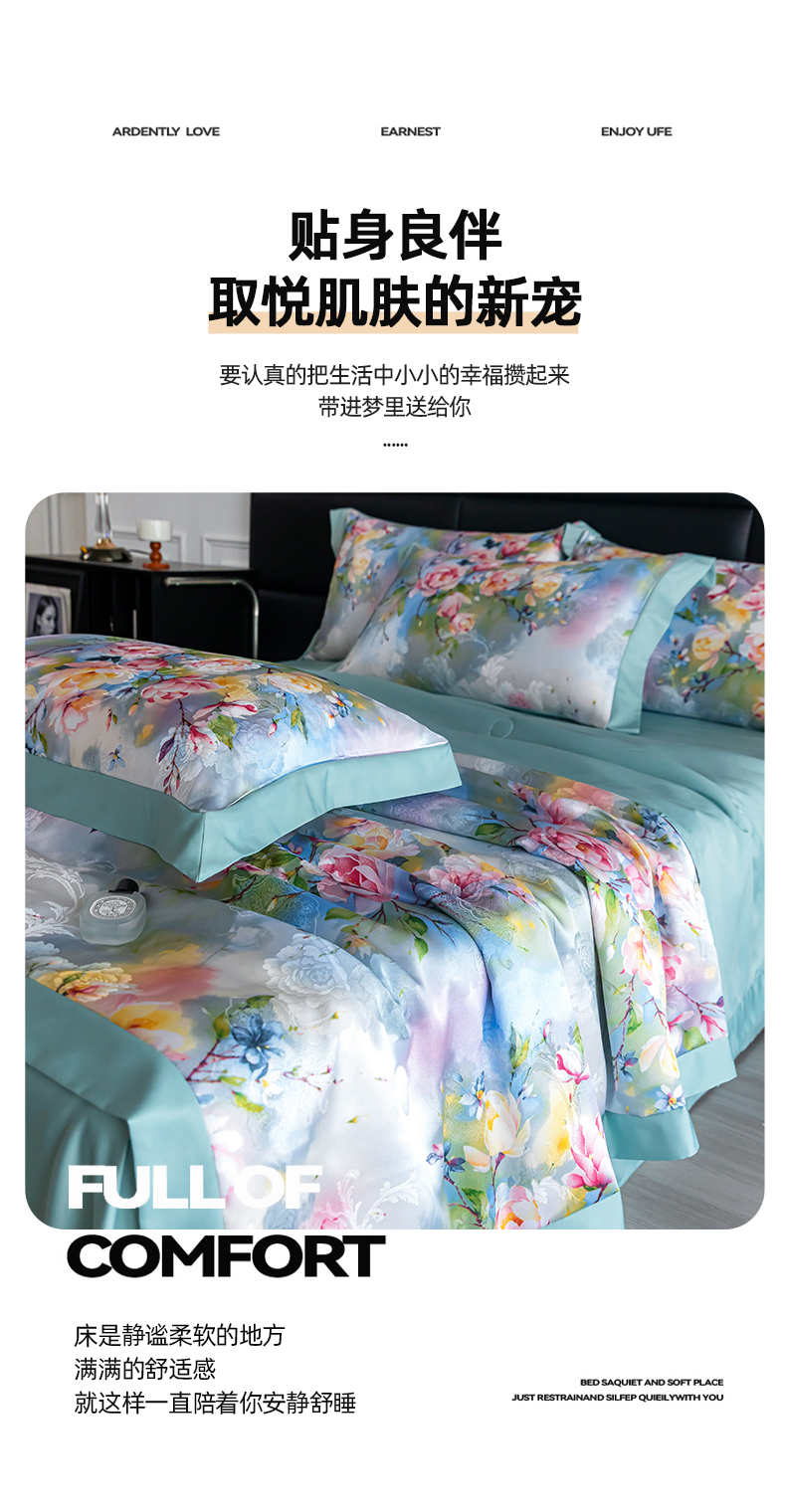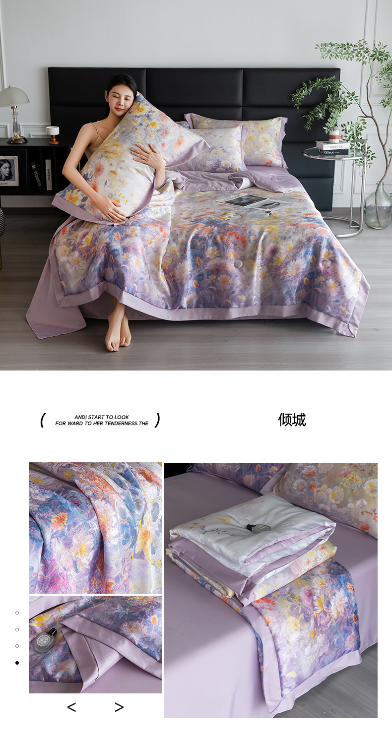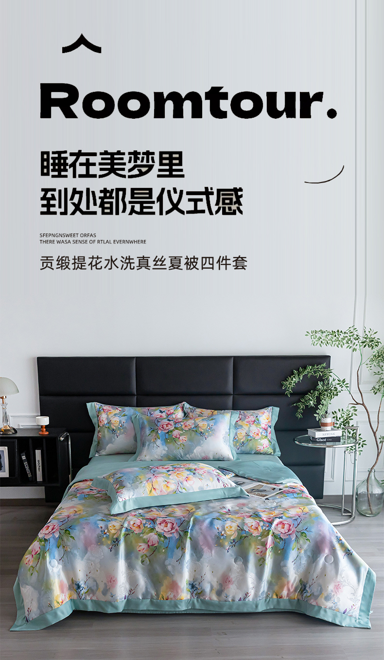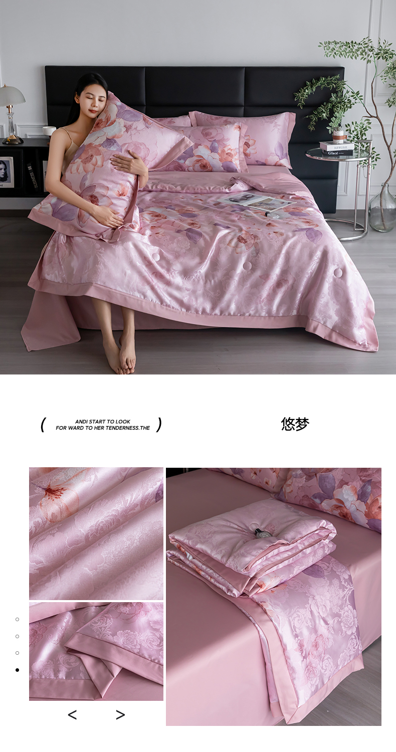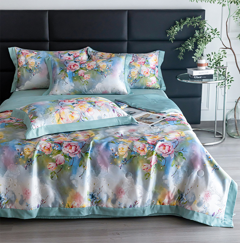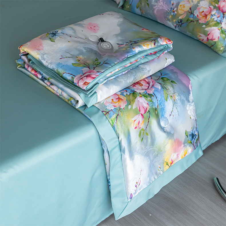 (总)七夜居 2025新款水洗真丝提花加印花贡缎提花夏被夏凉被空调被夏被四件套