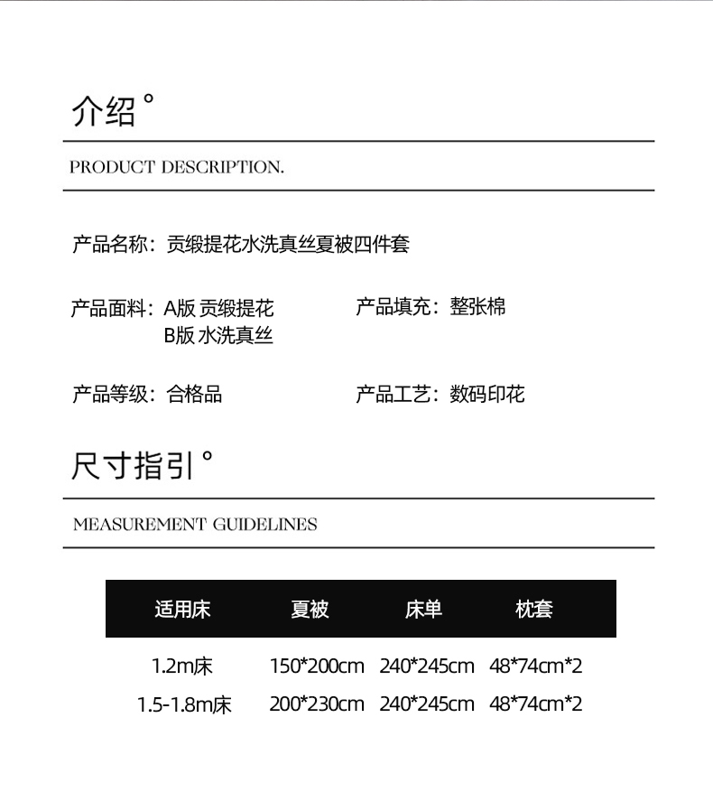商品名称:(总)七夜居 2025新款水洗真丝提花加印花贡缎提花夏被夏凉被空调被夏被四件套