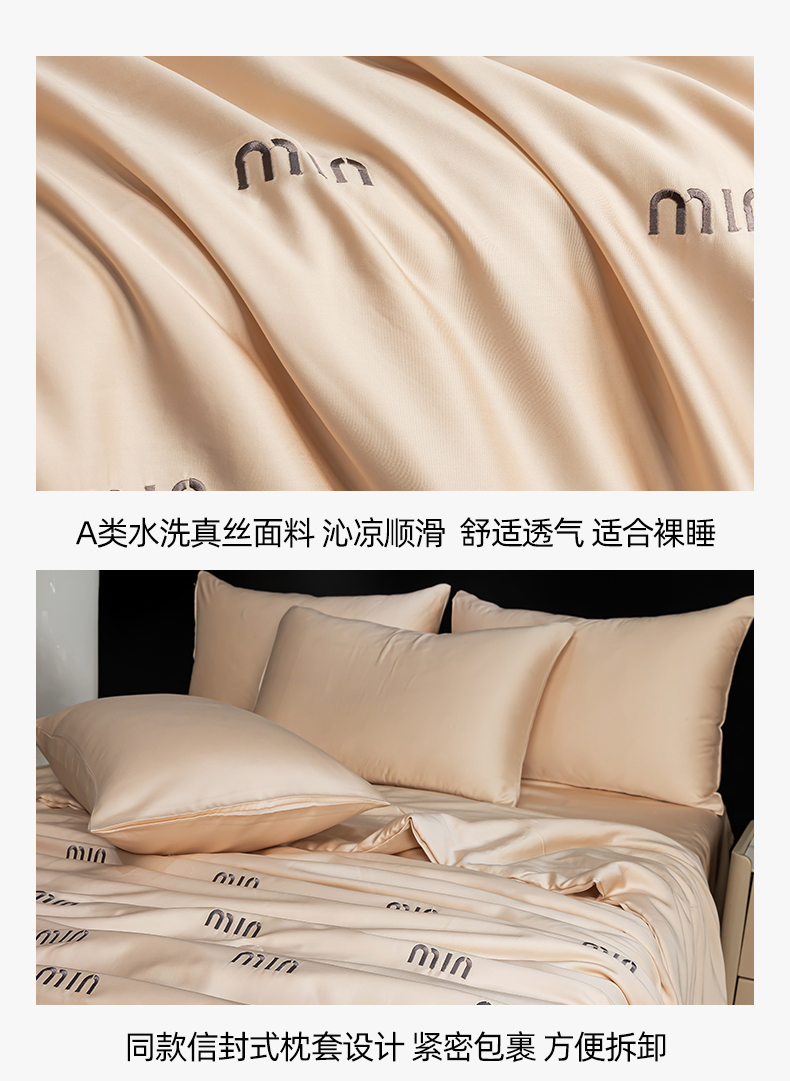 • 91家纺网 家纺一手货源 找家纺 小叮当家纺仓储工厂店 (提供买家秀 爆款花型 不断货)2025新款A类水洗真丝满绣夏被夏凉被四件套 minmin香槟