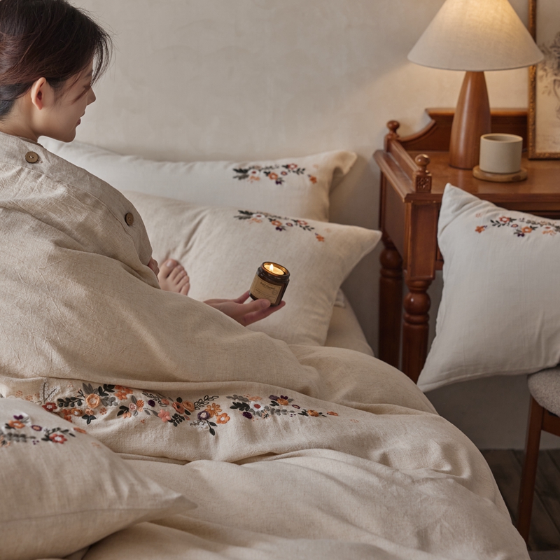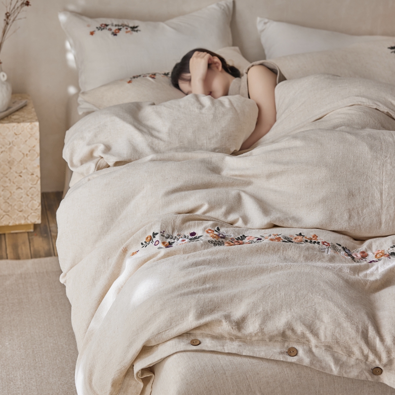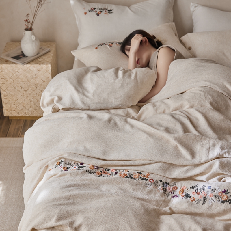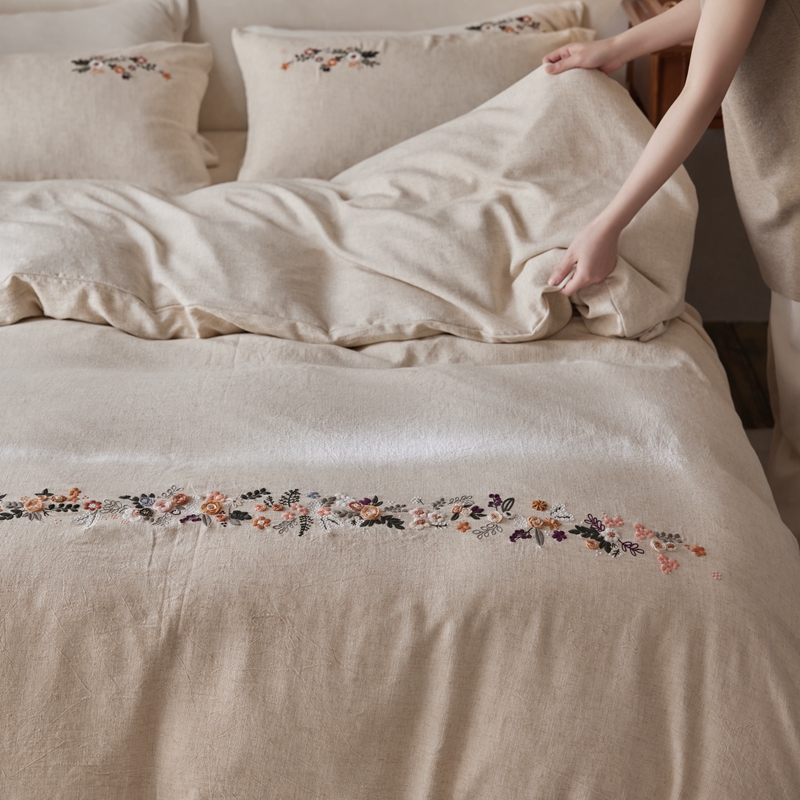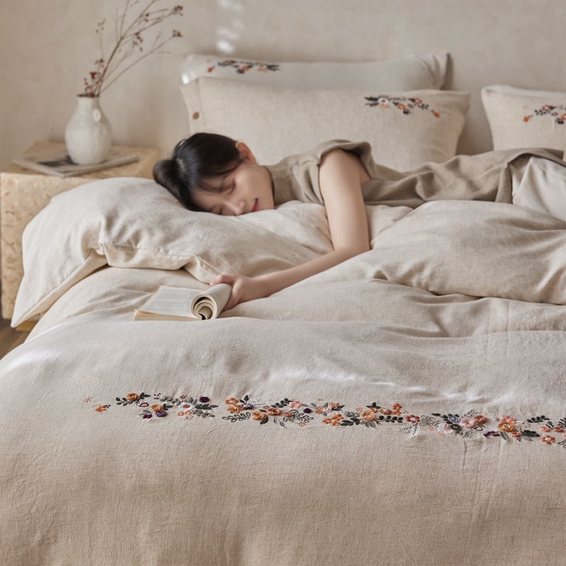 商品名称:安莱生活 2025新款手工绣鲁绣天丝麻高端四件套 绣春归-麻本