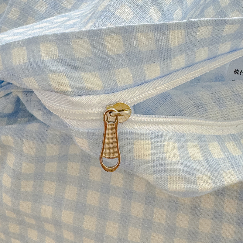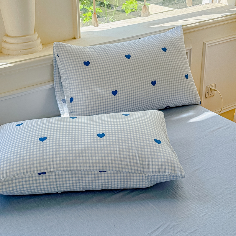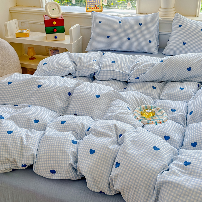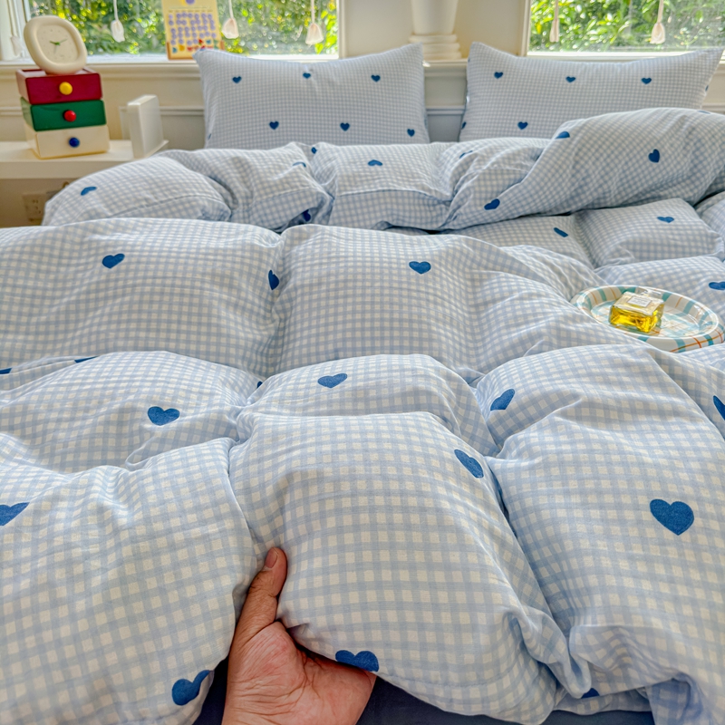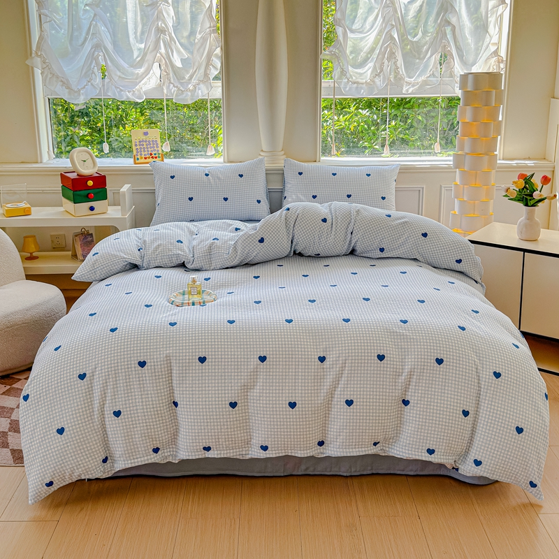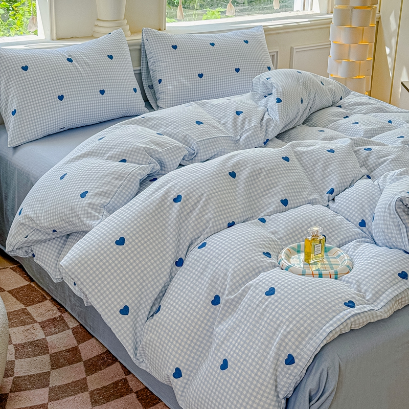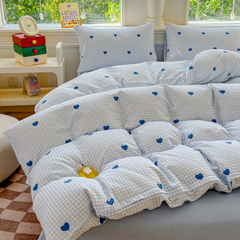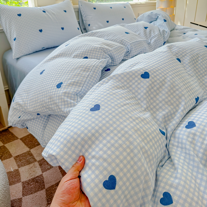 当前位置: 91家纺网 > 商品网购 > 床品套件 > 四件套 > 双层纱四件套 > 感遇家纺2025新款全棉双层纱纤柔四件套 格子爱心蓝