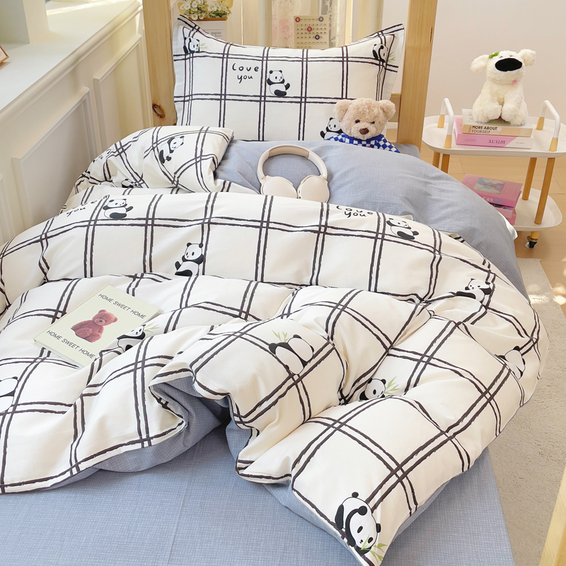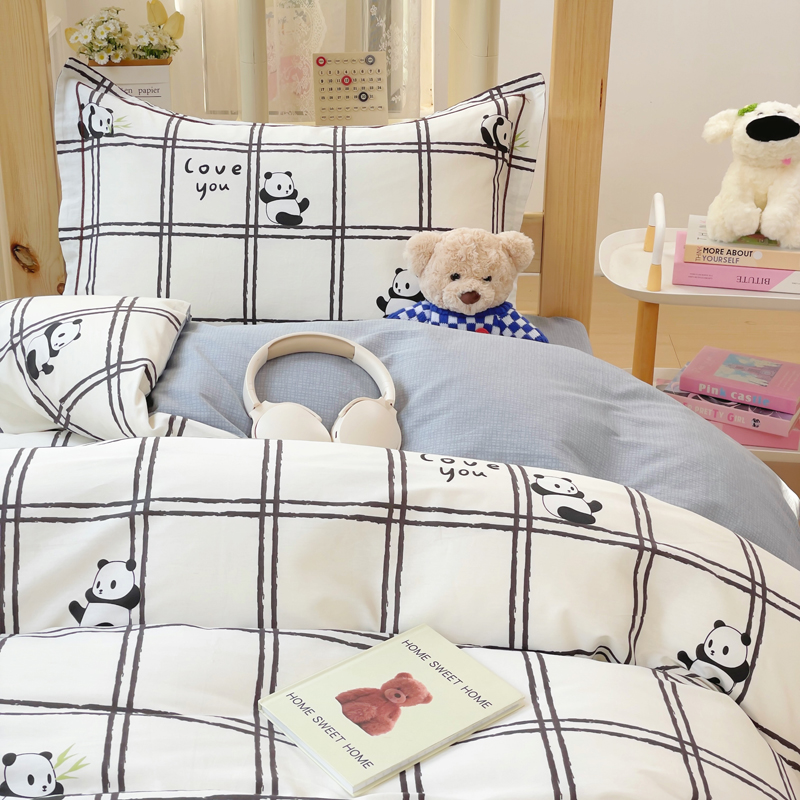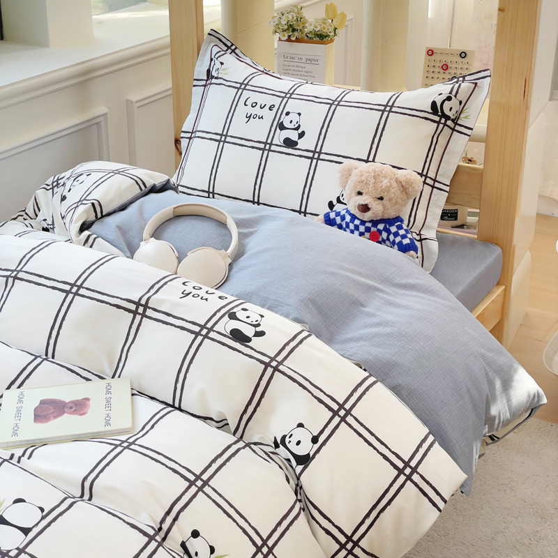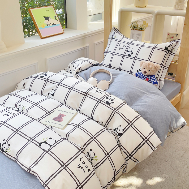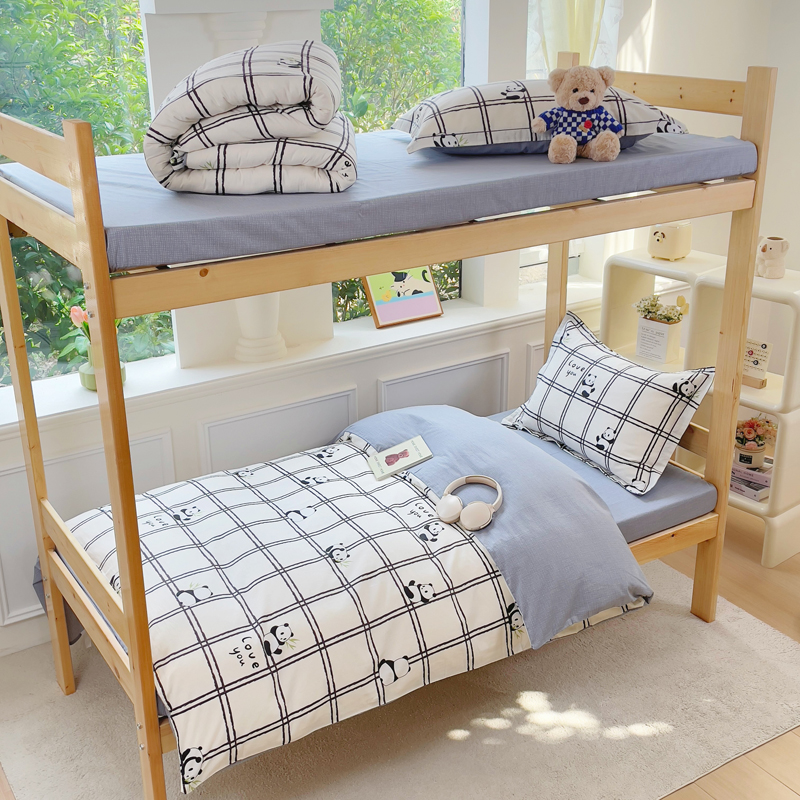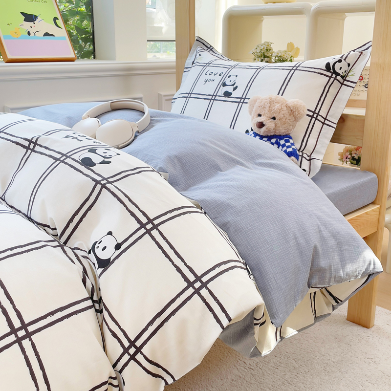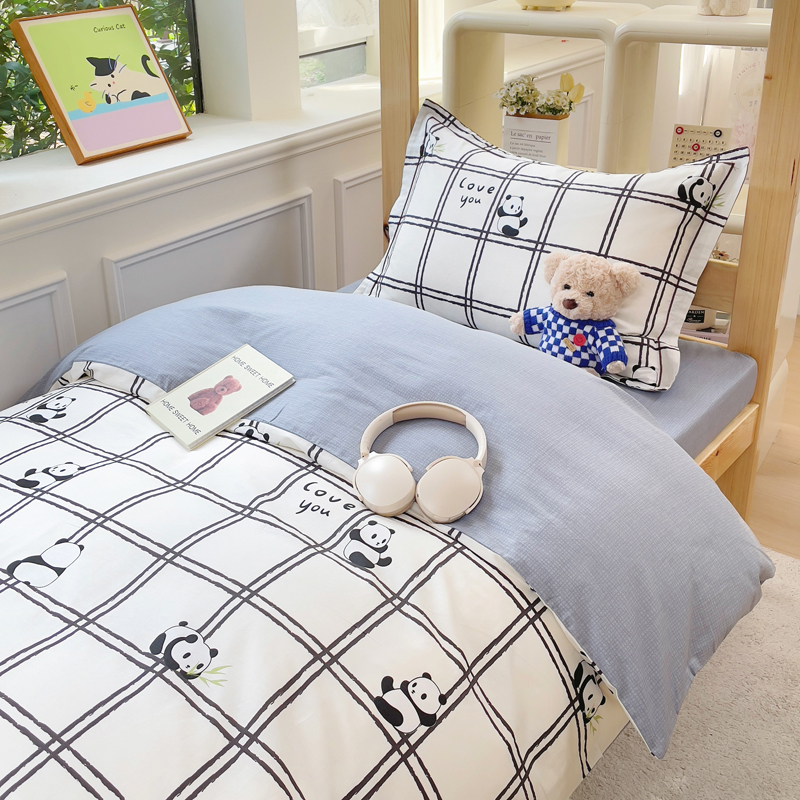 铭博家纺 新款100%全棉印花学生季宿舍上下铺三件套 趣味熊猫