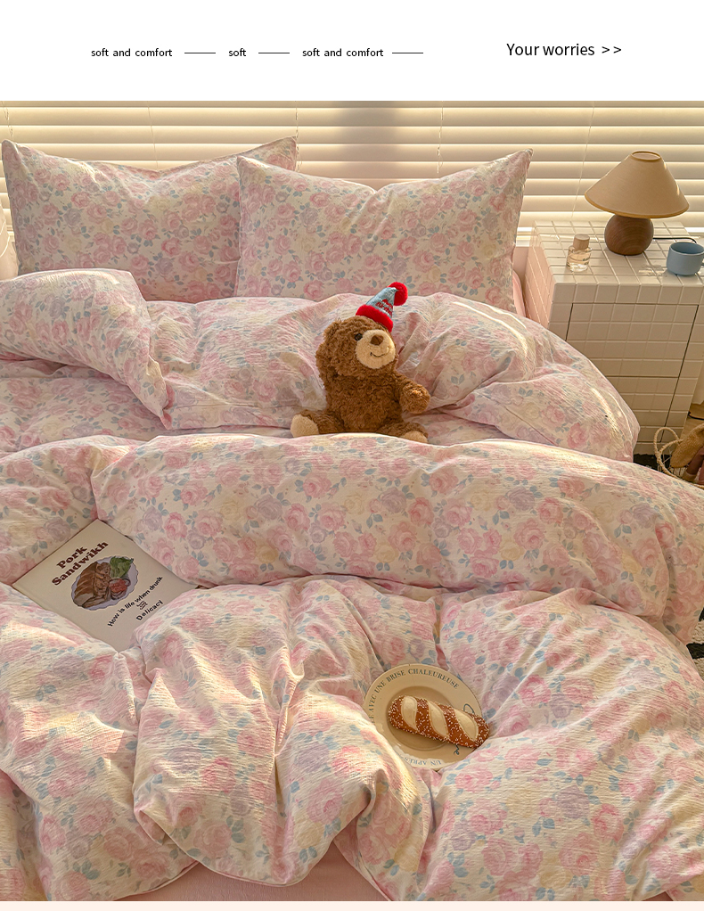 当前位置: 91家纺网 > 商品网购 > 床品套件 > 四件套 > 水洗棉四件套 > 繁花家居 2025学生季第二波木棉水洗棉四件套三件套跑量款 午后花园