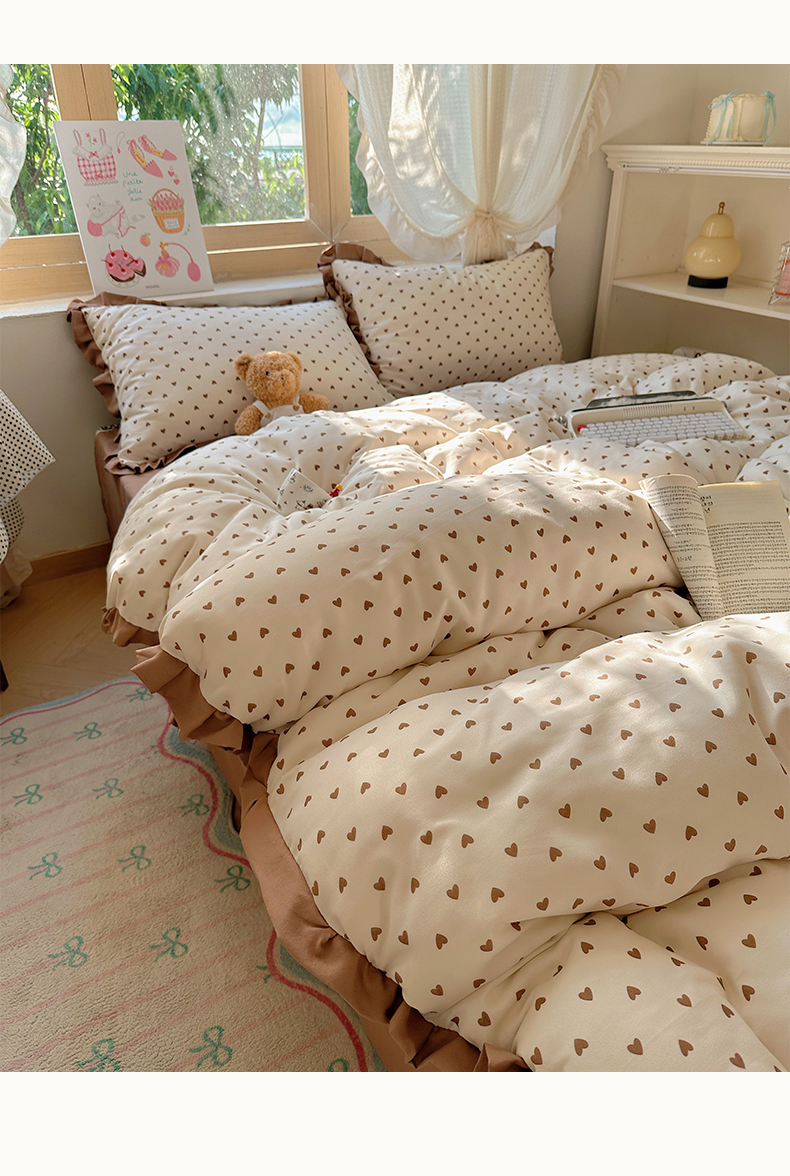 韩巢家纺 2025新款高克重印花牛奶绒床品四件套 爱心小樱桃,爱心小樱桃