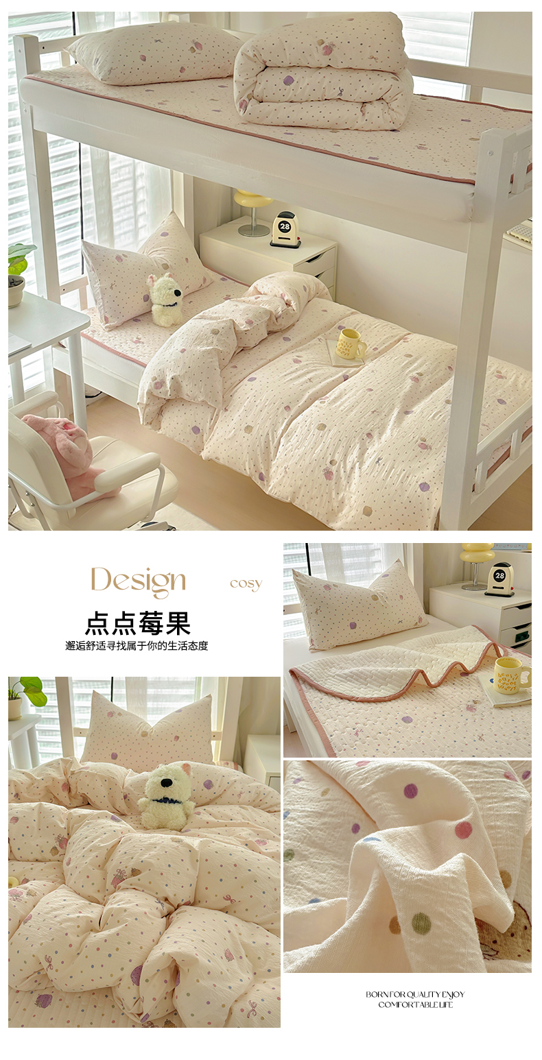 商品名称:美梦家纺2025新款木棉皱皱纱学生床盖四件套 点点莓果