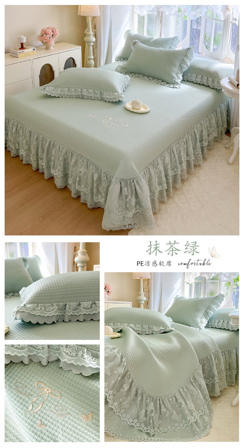 (总)乐朵家居 2026新款 25-3郁金香 天丝缎蕾丝床裙+可配空调被,绿,豆沙,奶白,灰,紫,卡其