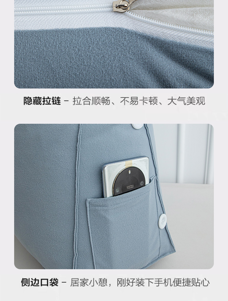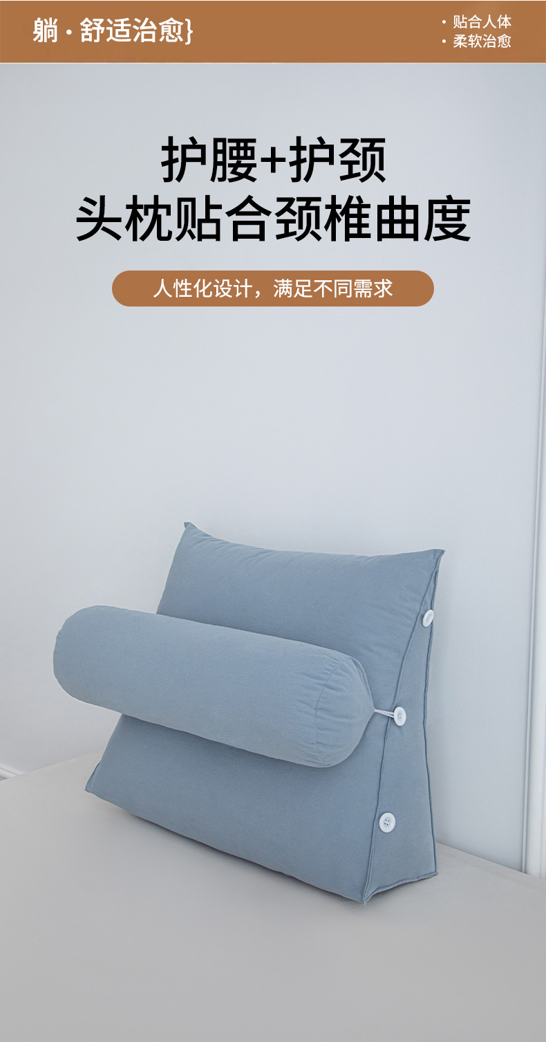 商品名称:沐沐家纺 2026新款仿棉绒三角靠背带头枕 宝蓝色