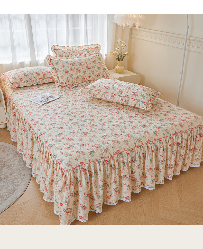 • 91家纺网 家纺一手货源 找家纺 缦彩 2025新款韩版A类全棉公主风纯棉夹棉床裙 小萝莉