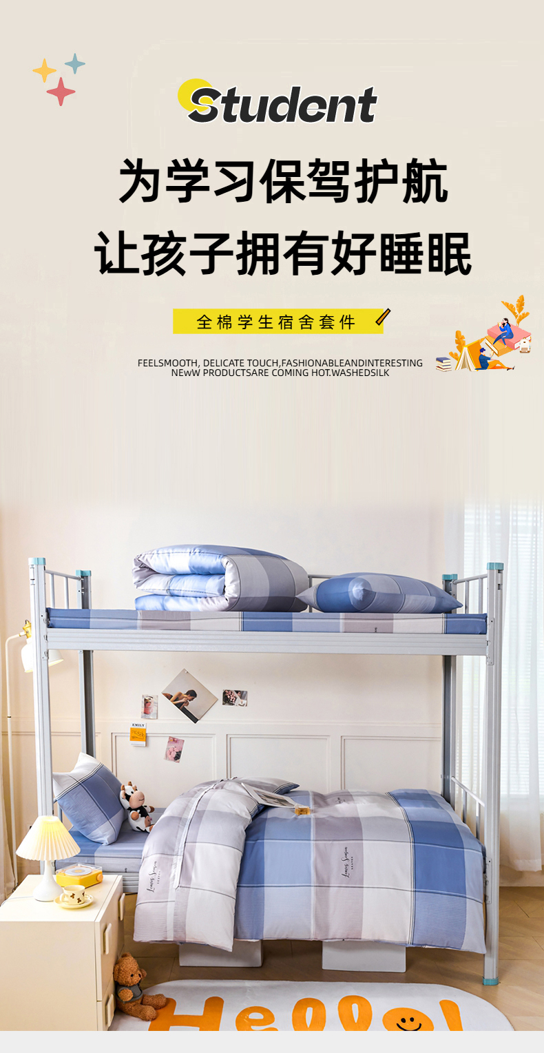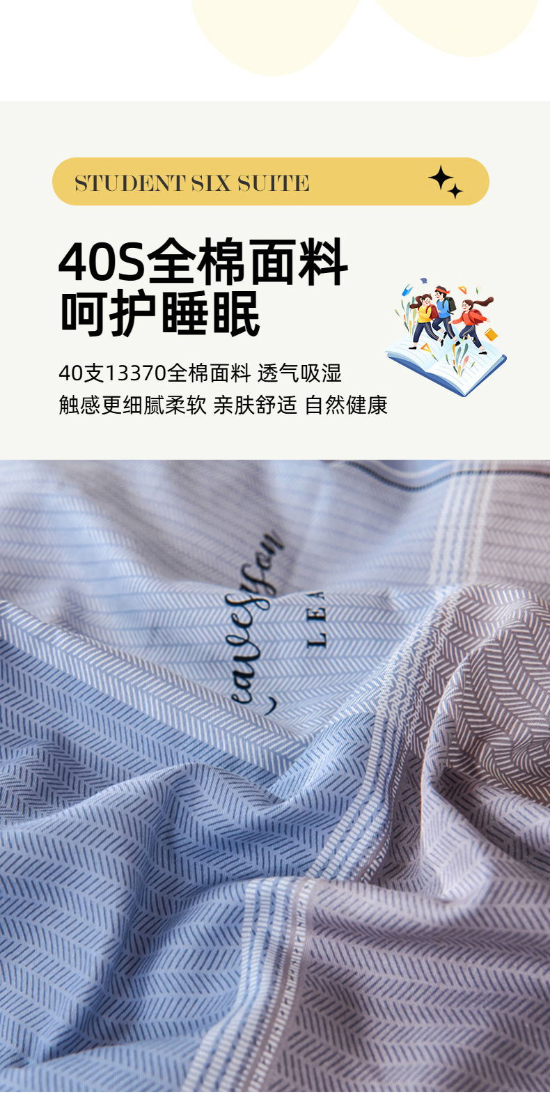 商品名称:(总)斯尔顿 2025新款全棉13070学生三件套小清新款六件套宿舍上下铺床品职工单位第二批
