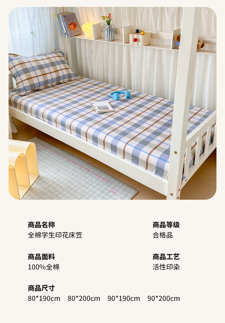 拾物记 2025新款A类全棉纯棉棉印花学生床笠床笠单件单床笠 德罗克
