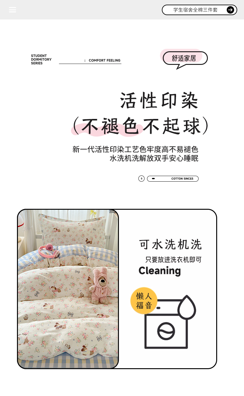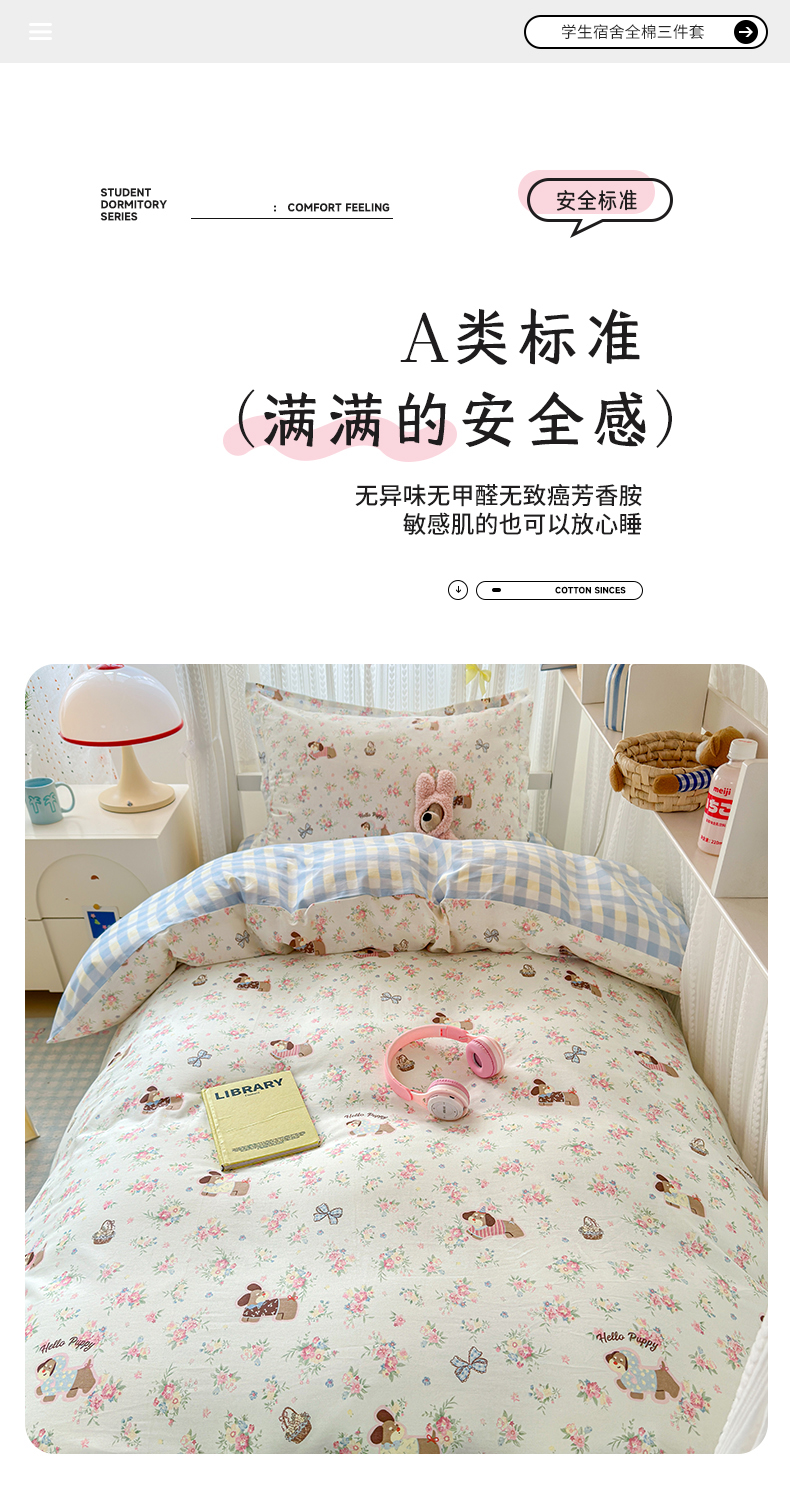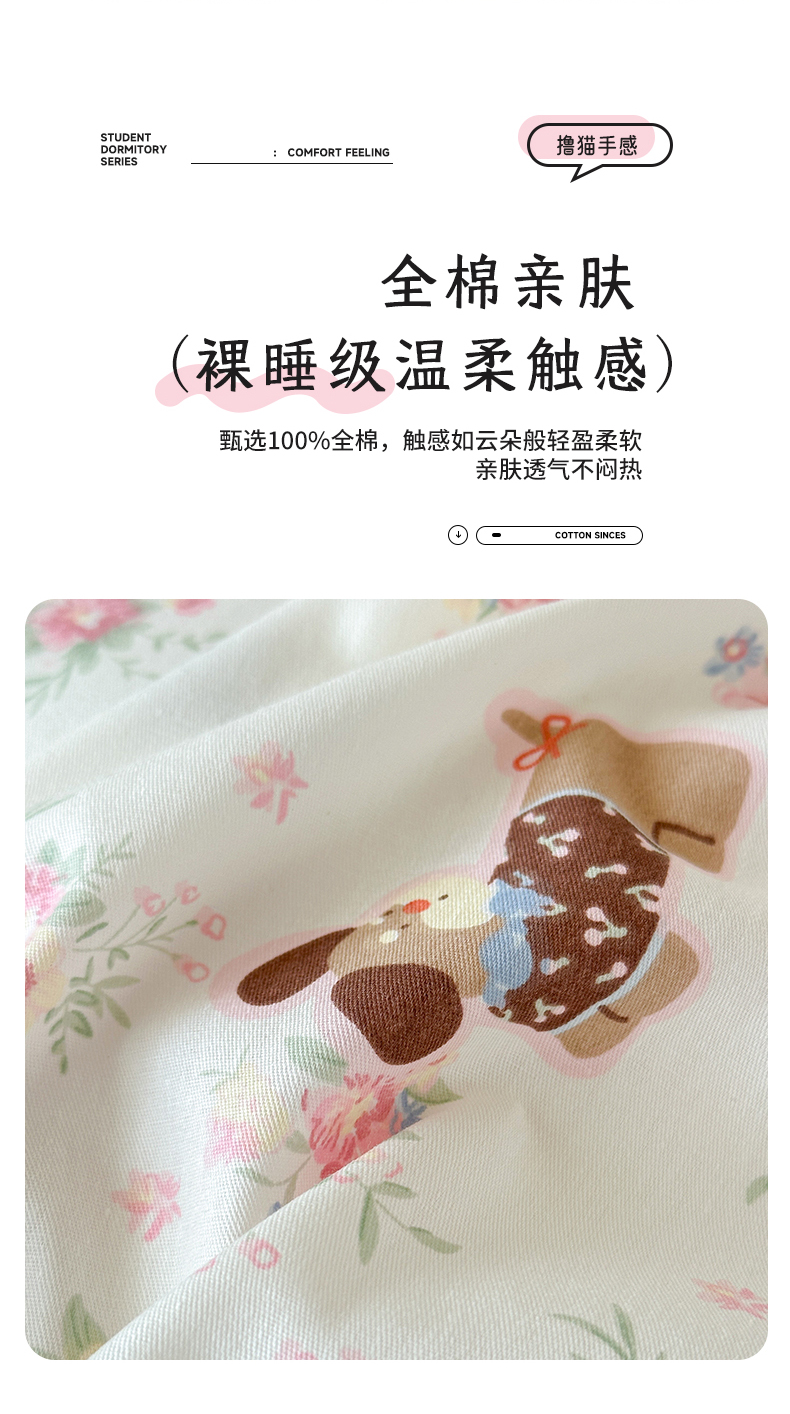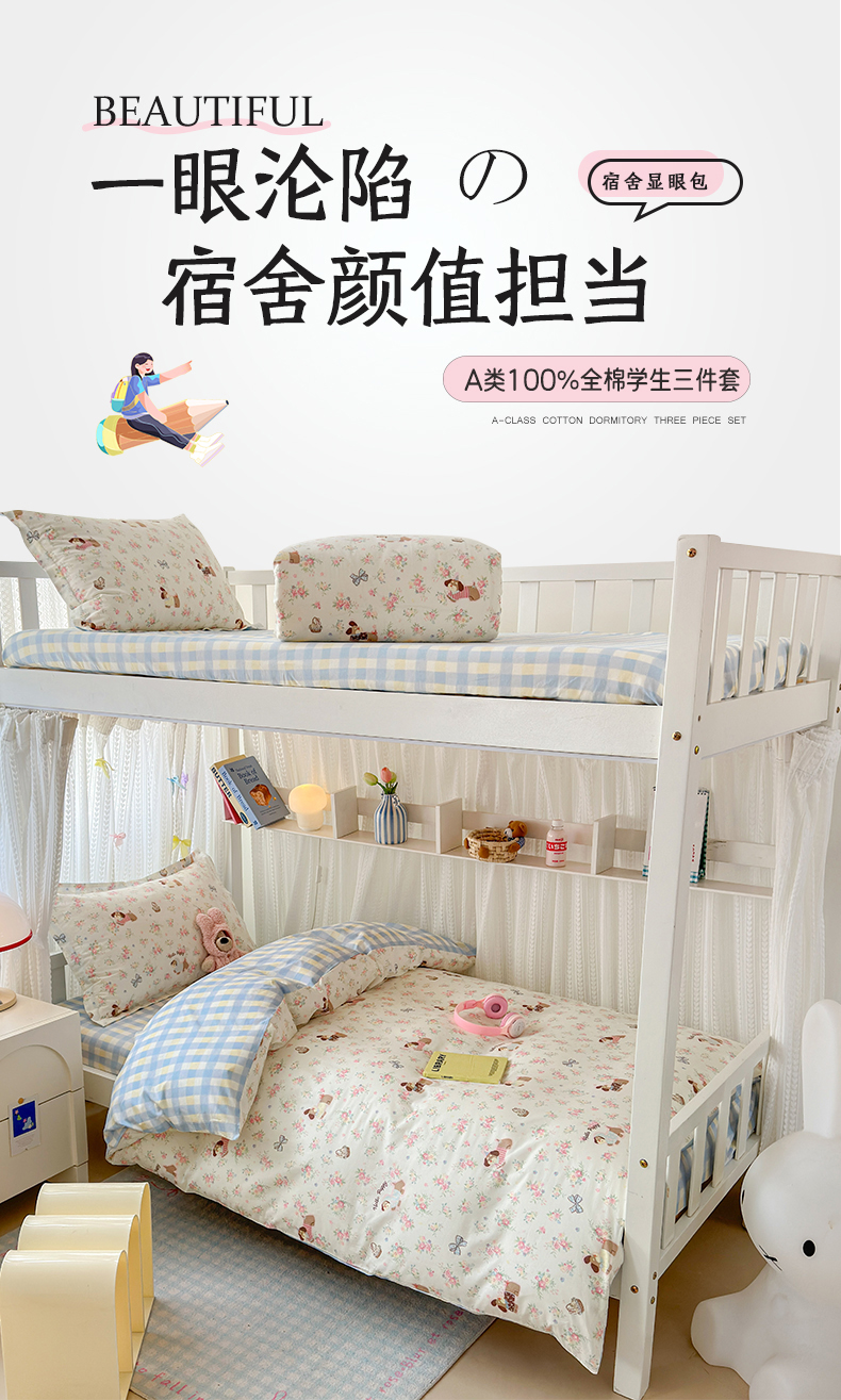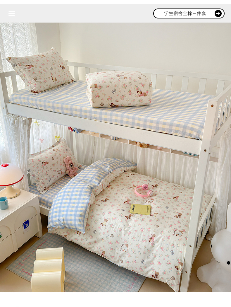 当前位置: 91家纺网 > 商品网购 > 床品套件 > 三件套 > 拾物记 2025新款A类全棉纯棉棉印花学生宿舍三件套上下铺三件套-第二批 花田小狗