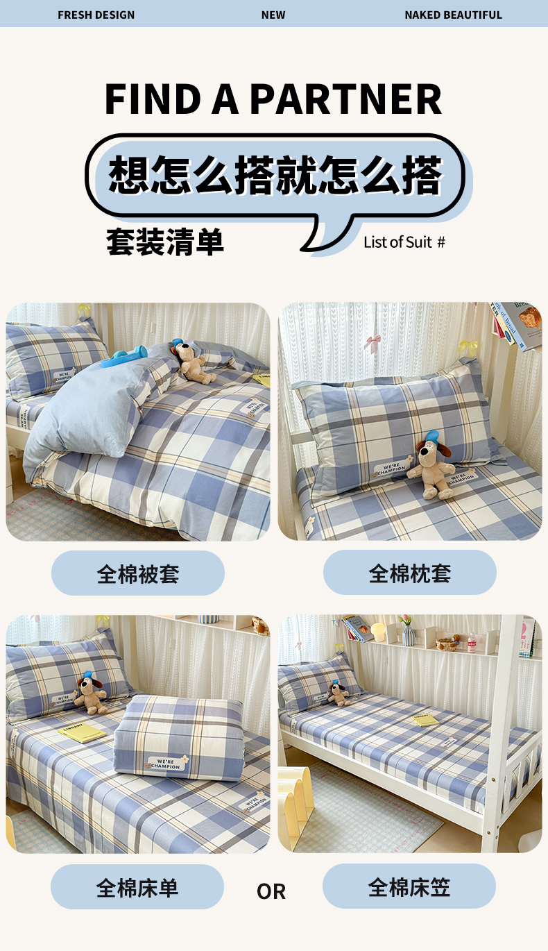 【床笠款】0.9x2.0三件套-被套150x200 | ¥61.00 |