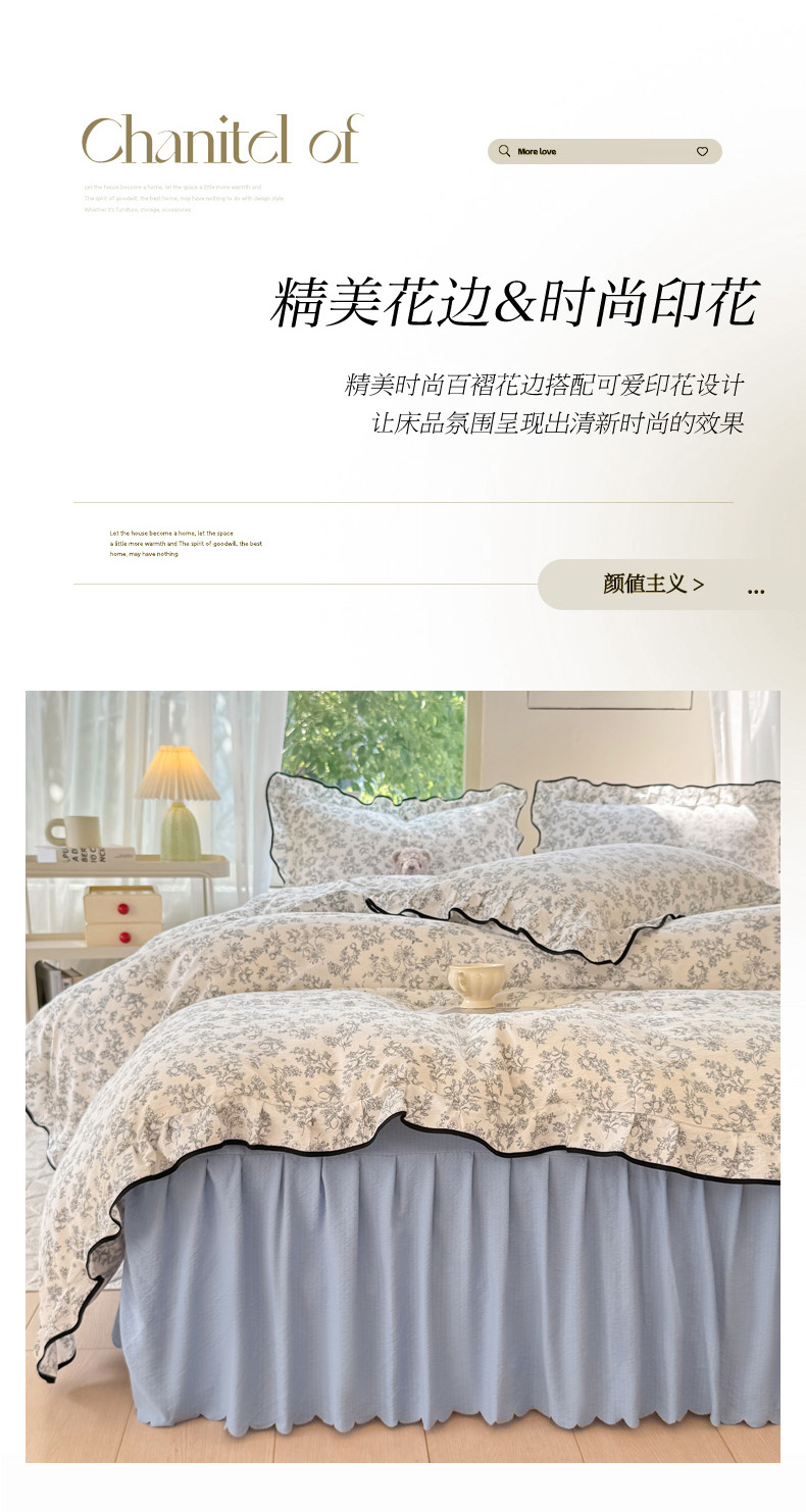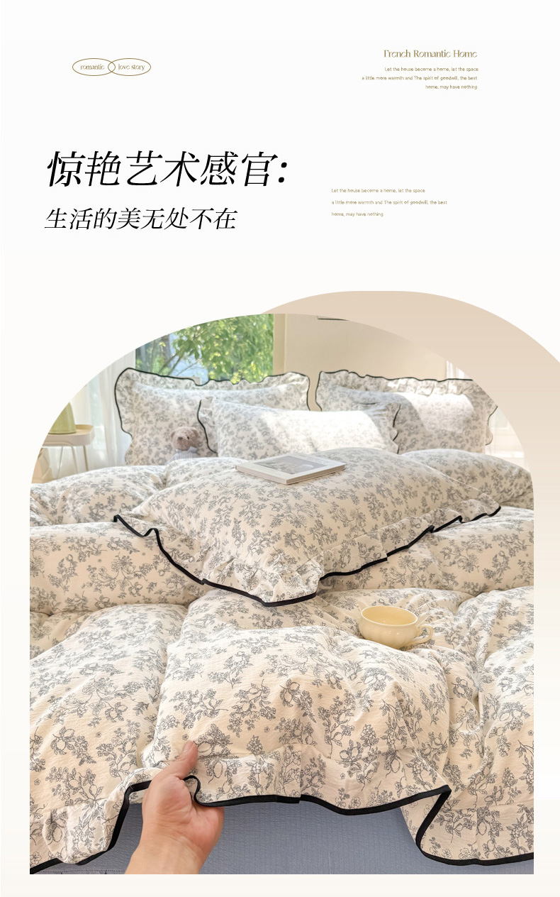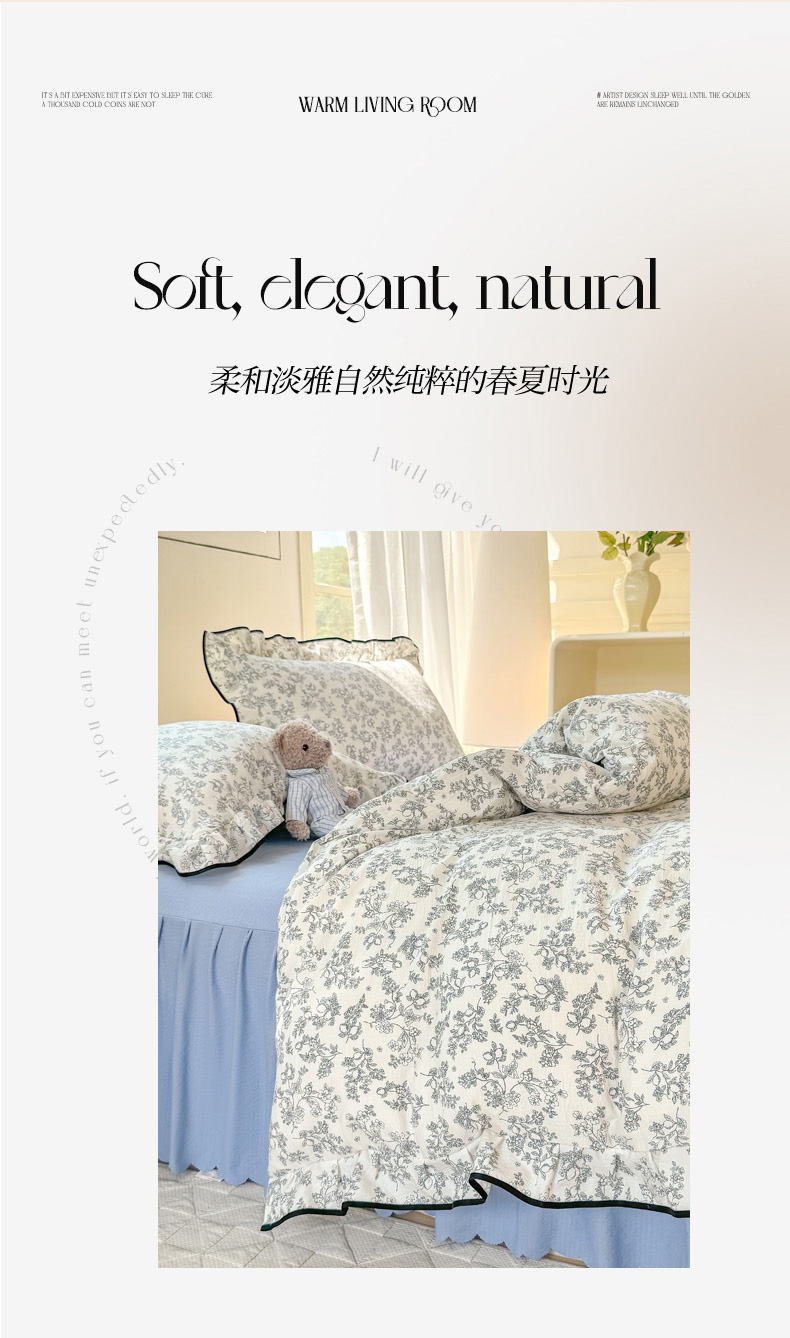当前位置: 91家纺网 > 商品网购 > 床品套件 > 四件套 > 双层纱四件套 > 上尚居 2025新款简约时尚木棉云感皱皱纱四件套 朝花夕拾