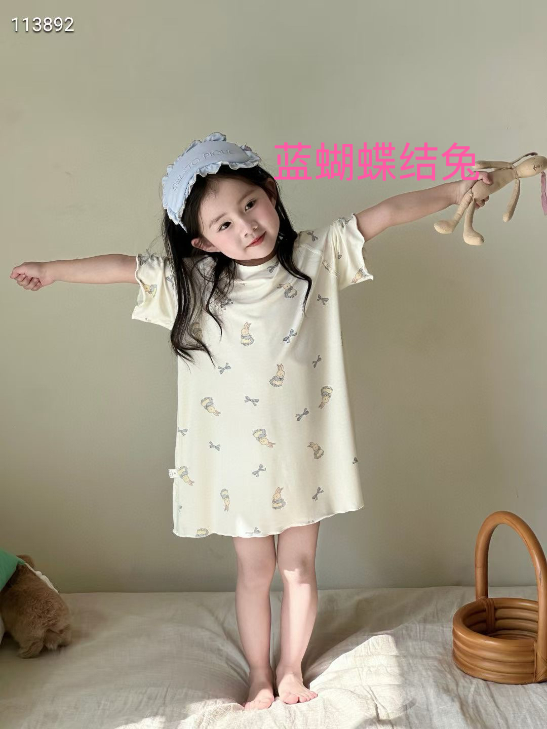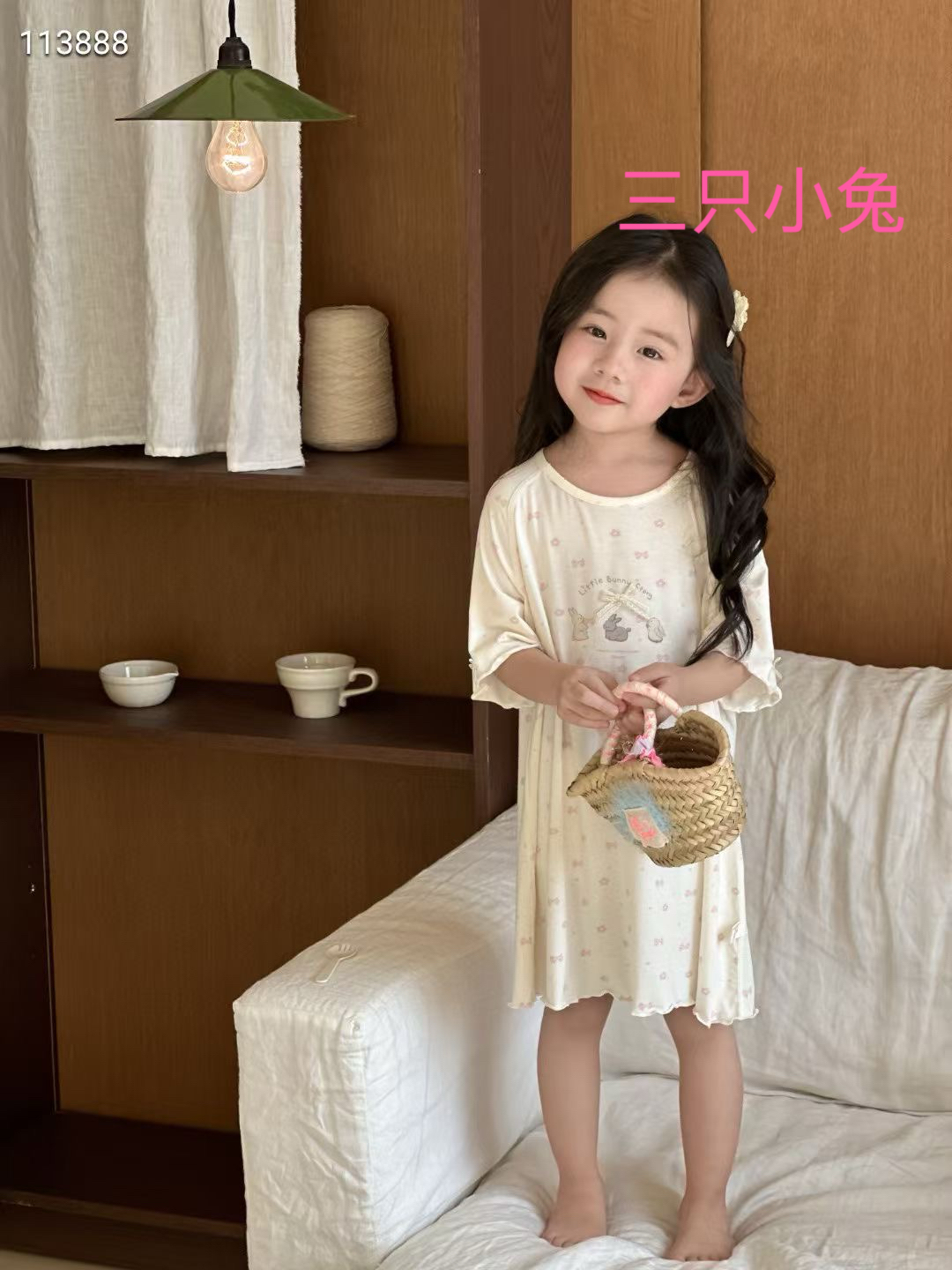 商品名称:妍景家居生活馆 2025春夏新款儿童优可丝女童睡裙 三只小兔