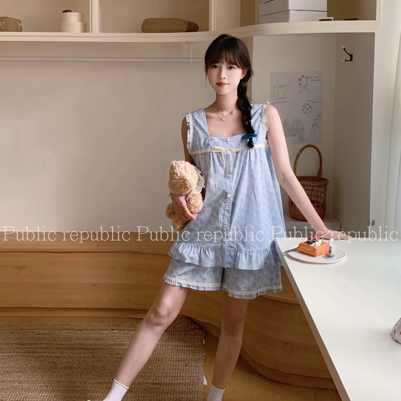 当前位置: 91家纺网 > 商品网购 > 居家日用 > 睡衣/家居服套装 > 妍景家居生活馆 2025新款韩系2065无袖款家居套装 白色