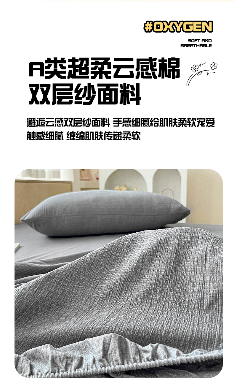 当前位置: 91家纺网 > 商品网购 > 床上用品 > 床笠 > 卡迪熊家纺 2025新款超柔云感双层纱床笠 双层纱-浅灰