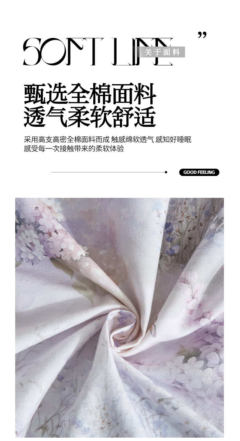 金纱玉纺家纺 2024新款全棉大版印花13372四件套 幽香恋曲,幽香恋曲