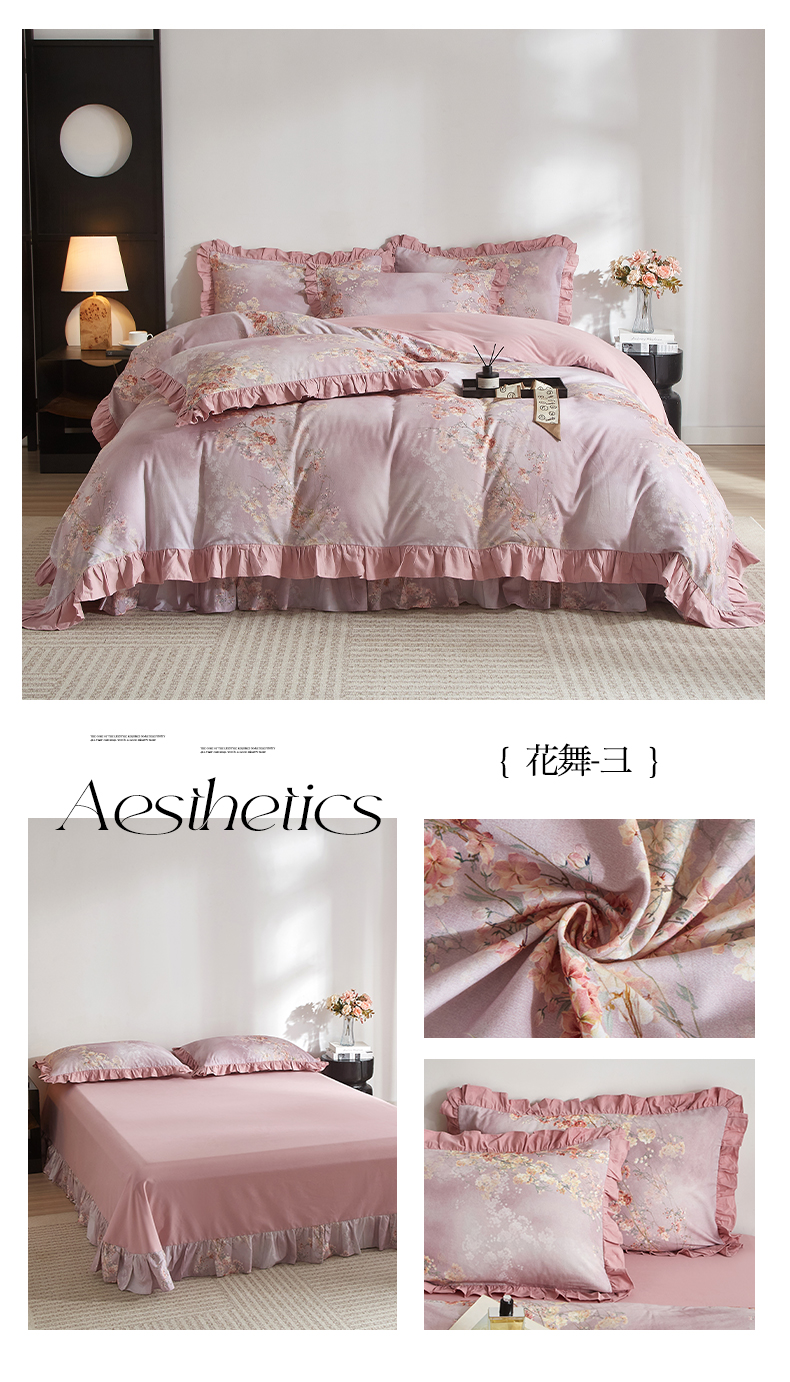 (总)金纱玉纺家纺 2025新款古法水洗花边床裙床单四件套,春熙,希露-灰,希露-紫豆沙,仙韵-黄,仙韵-绿