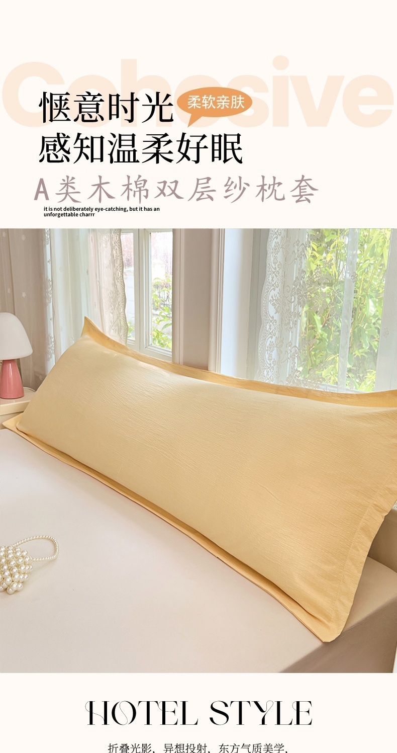 商品名称:梦舒羽 2025新款云感双层纱印花双人枕套情侣1.5m枕芯套1.8床枕头 奶酪黄
