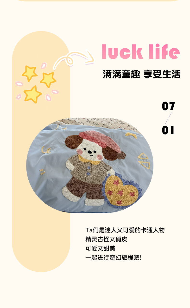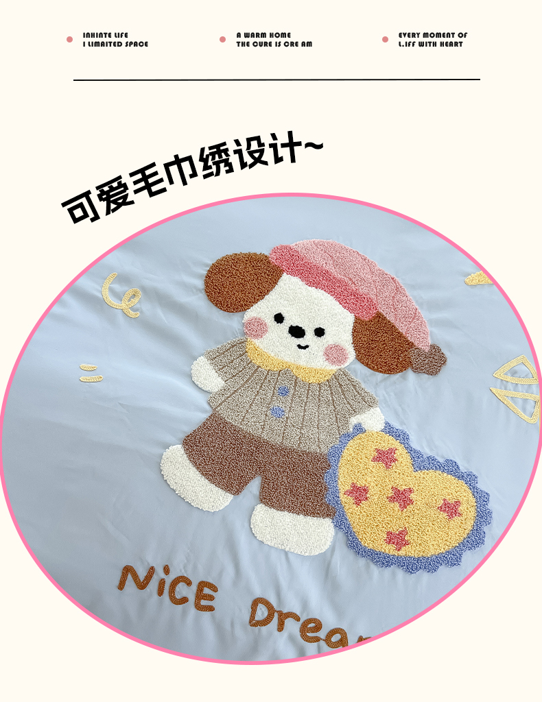 当前位置: 91家纺网 > 商品网购 > 床品套件 > 四件套 > 其它四件套 > 罗亿家纺 2025新款110g高克重云朵棉直播热款毛巾绣四件套 晚安小狗
