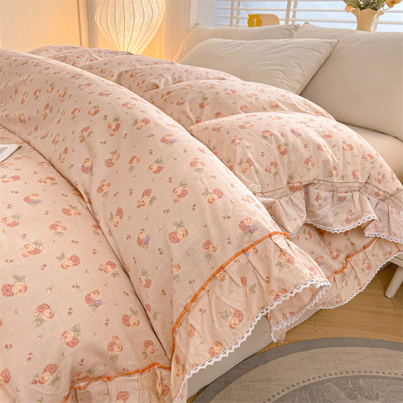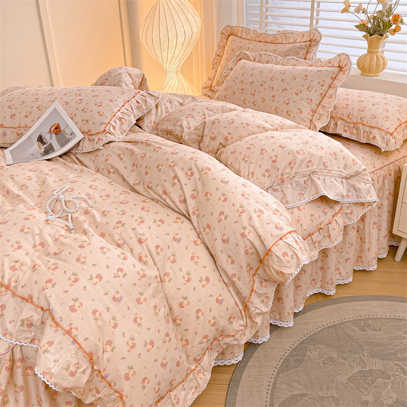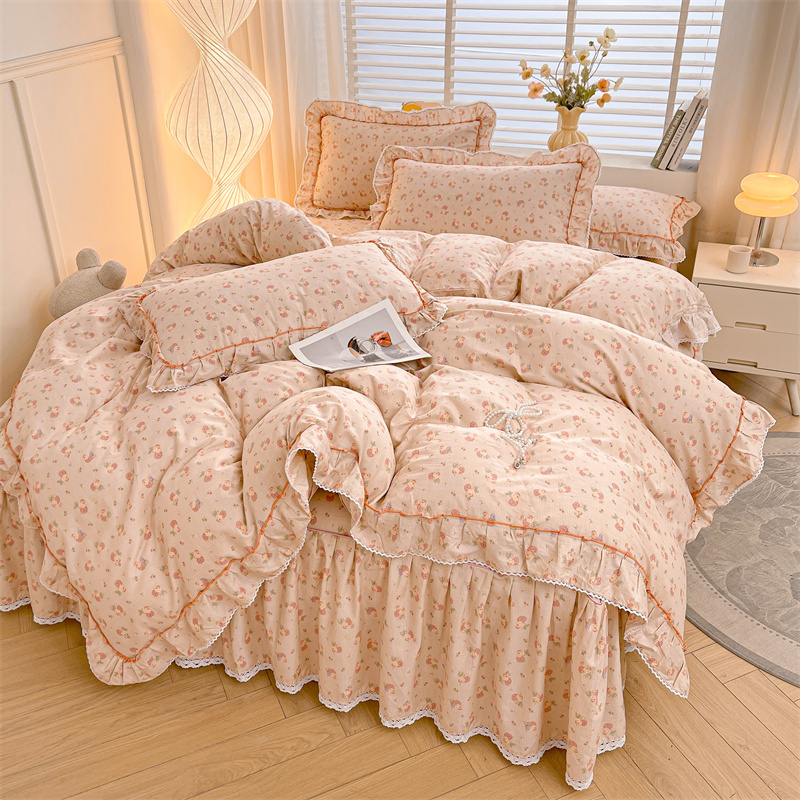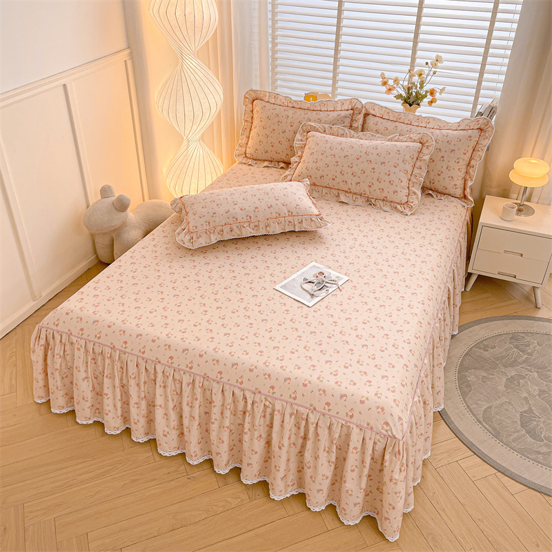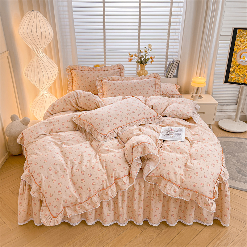 • 91家纺网 家纺一手货源 找家纺 2025新款韩版全棉公主风床裙单品 沫沫小姐桔