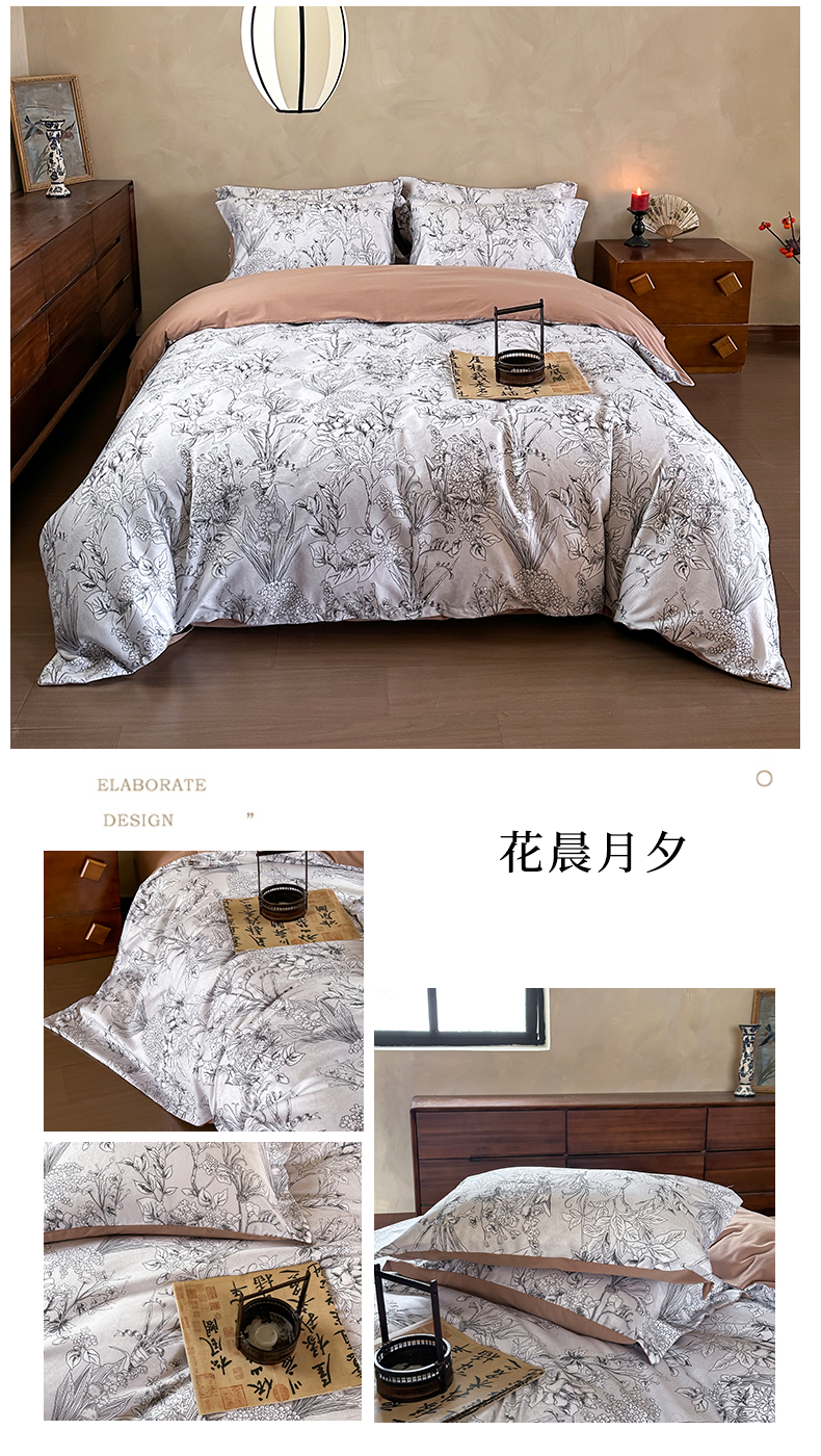商品名称:绒棉世家 2025新款60贡缎数码印花长绒棉全棉四件套 秘境灰