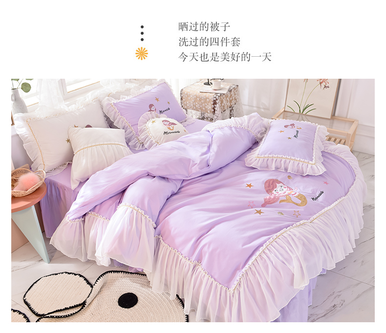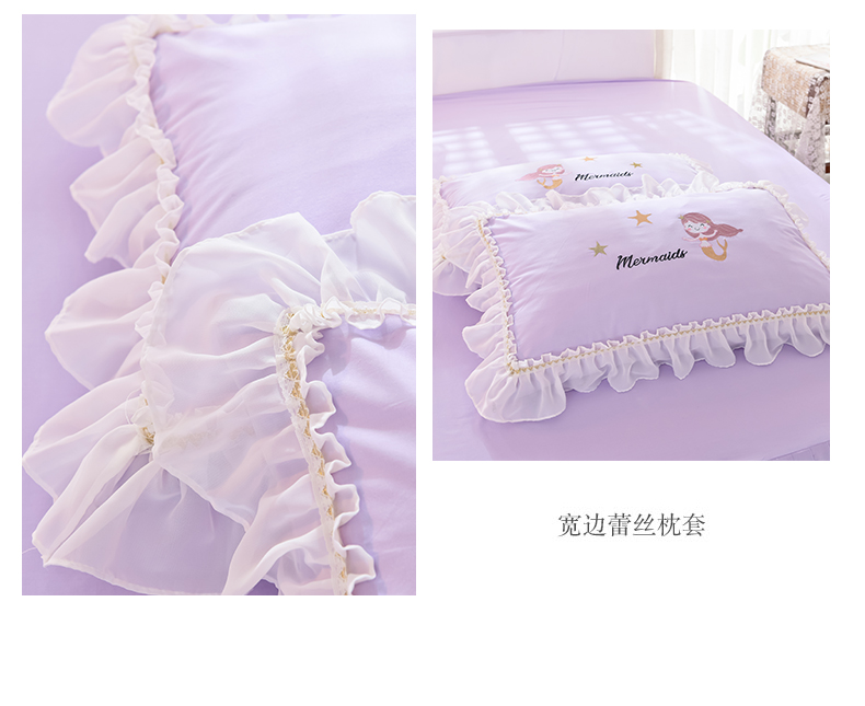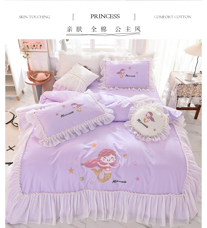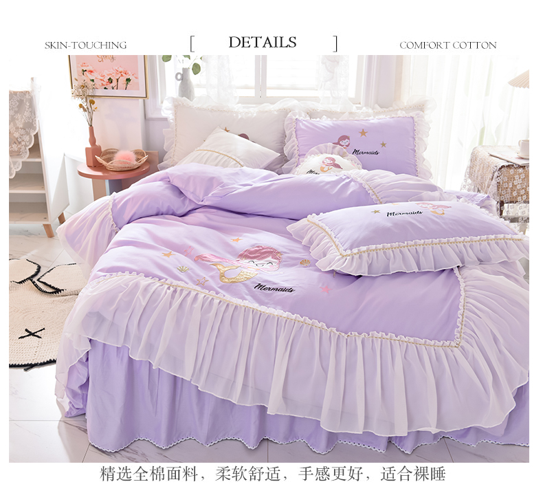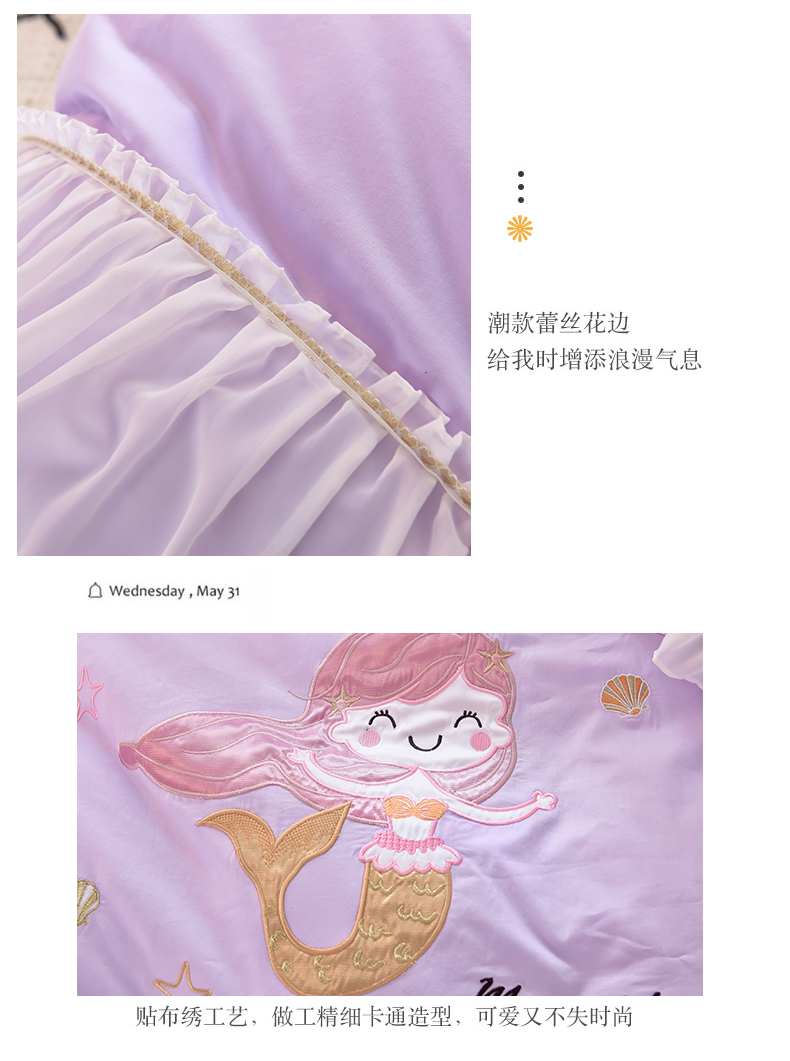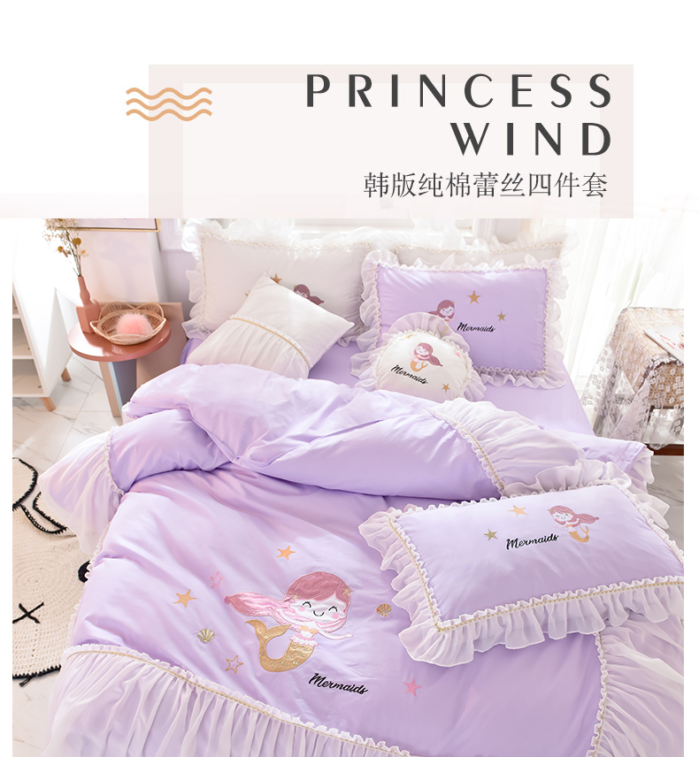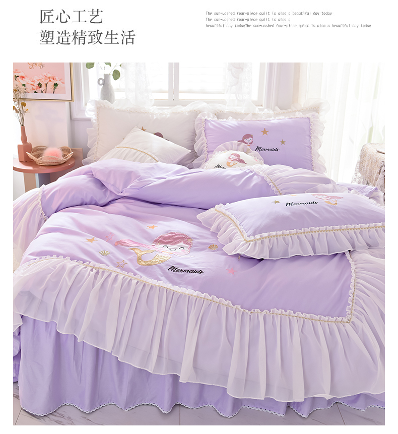 商品名称:花香四季家纺 2025新款13376纯棉贴布刺绣雪纺纱四件套-人鱼小姐 人鱼小姐紫