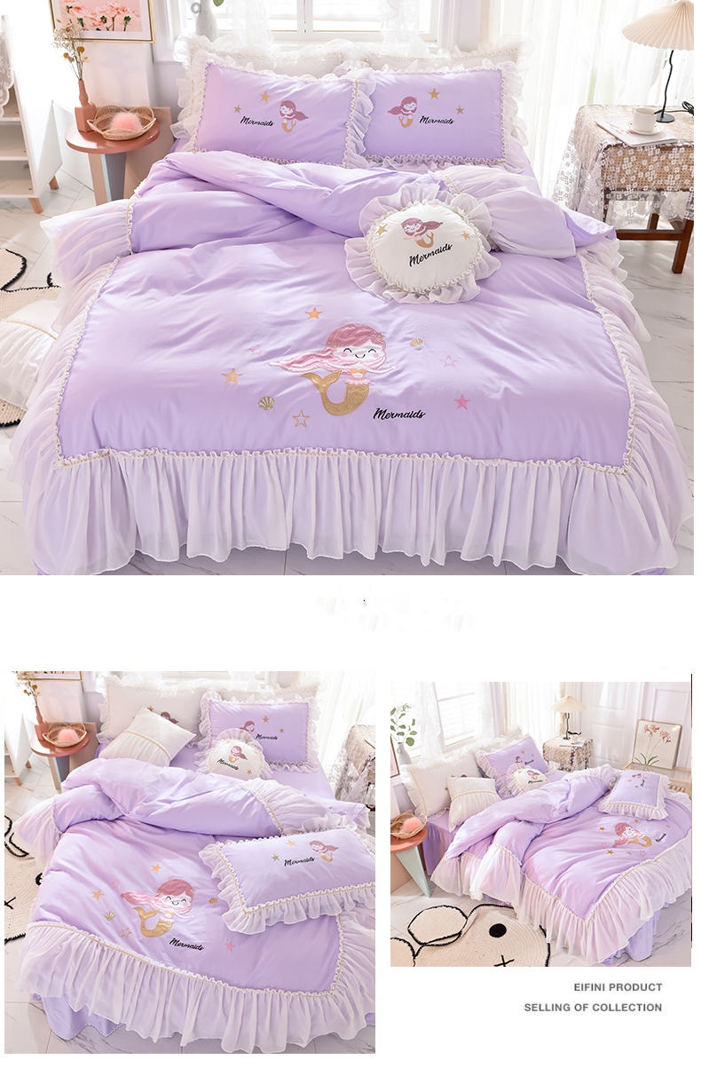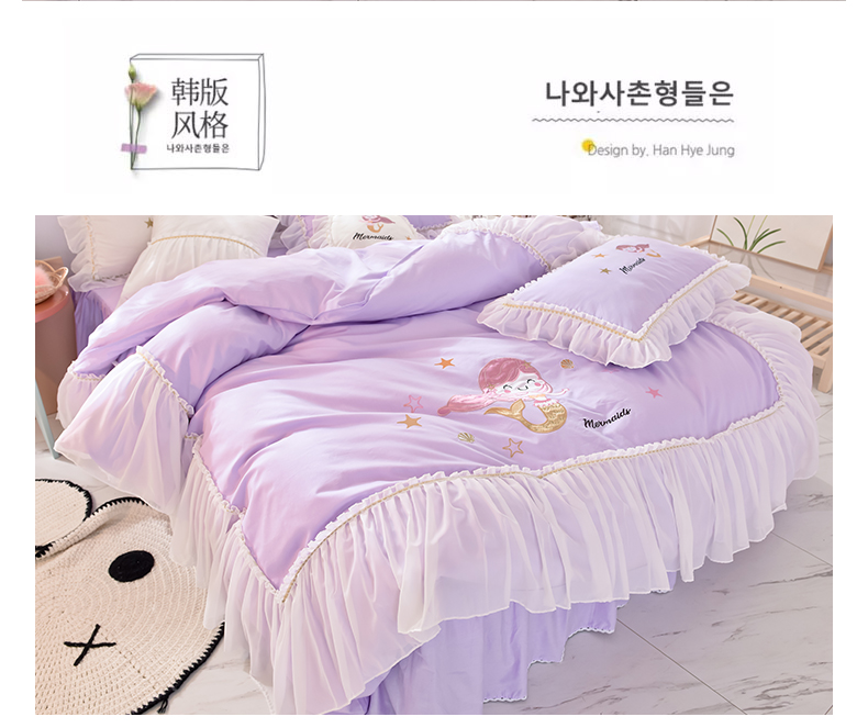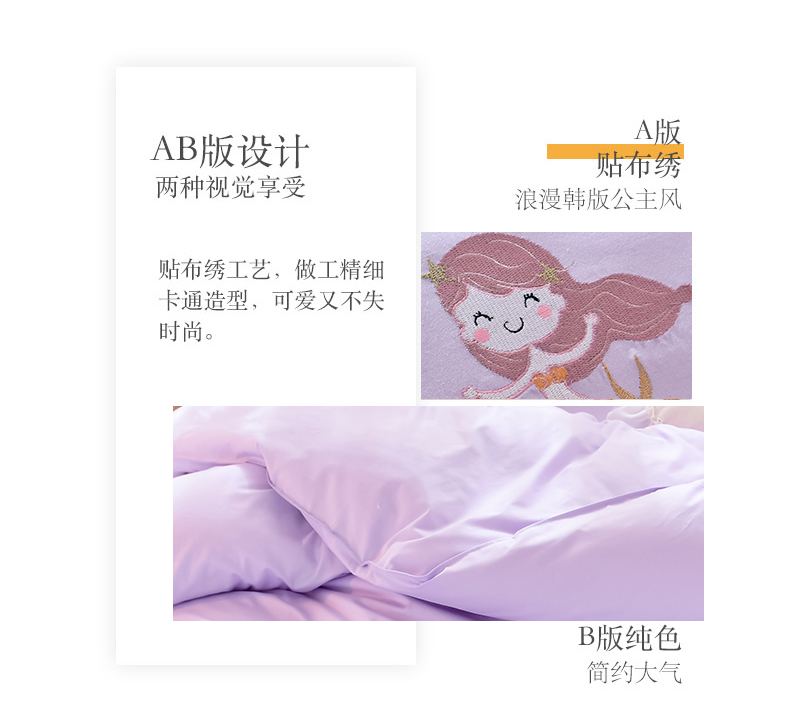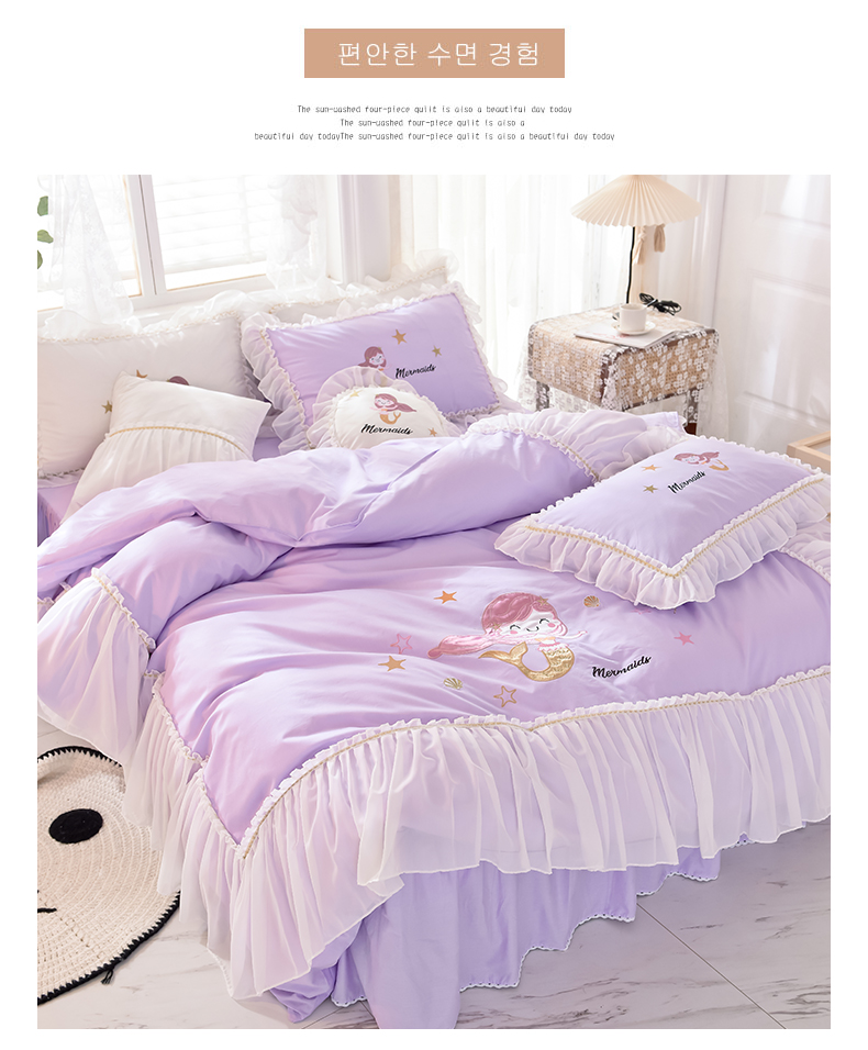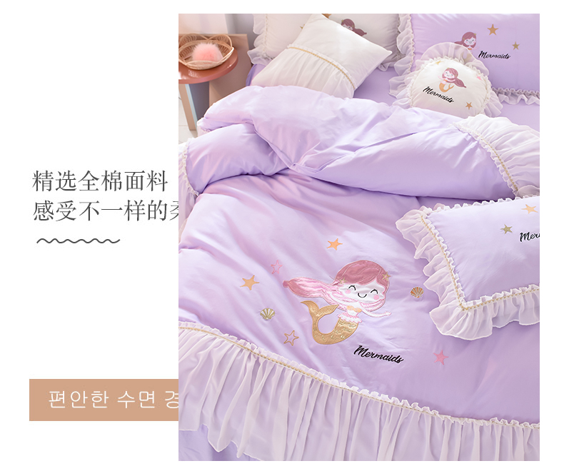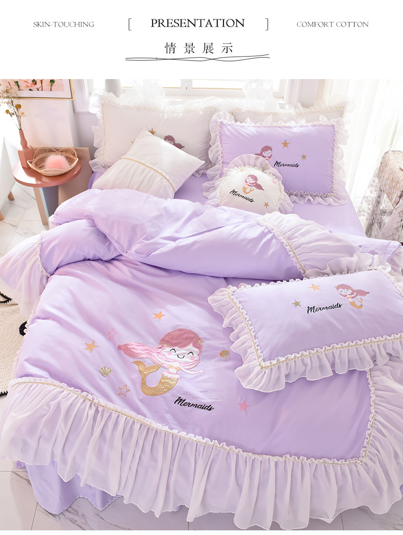 商品名称:花香四季家纺 2025新款13376纯棉贴布刺绣雪纺纱四件套-人鱼小姐 人鱼小姐紫