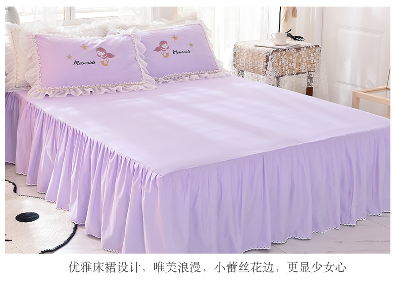 (总)花香四季家纺 2025新款夹棉绗缝床裙单件三件套法式四件套套件蕾丝公主风,灰色,绿色,米色,玉色,紫色