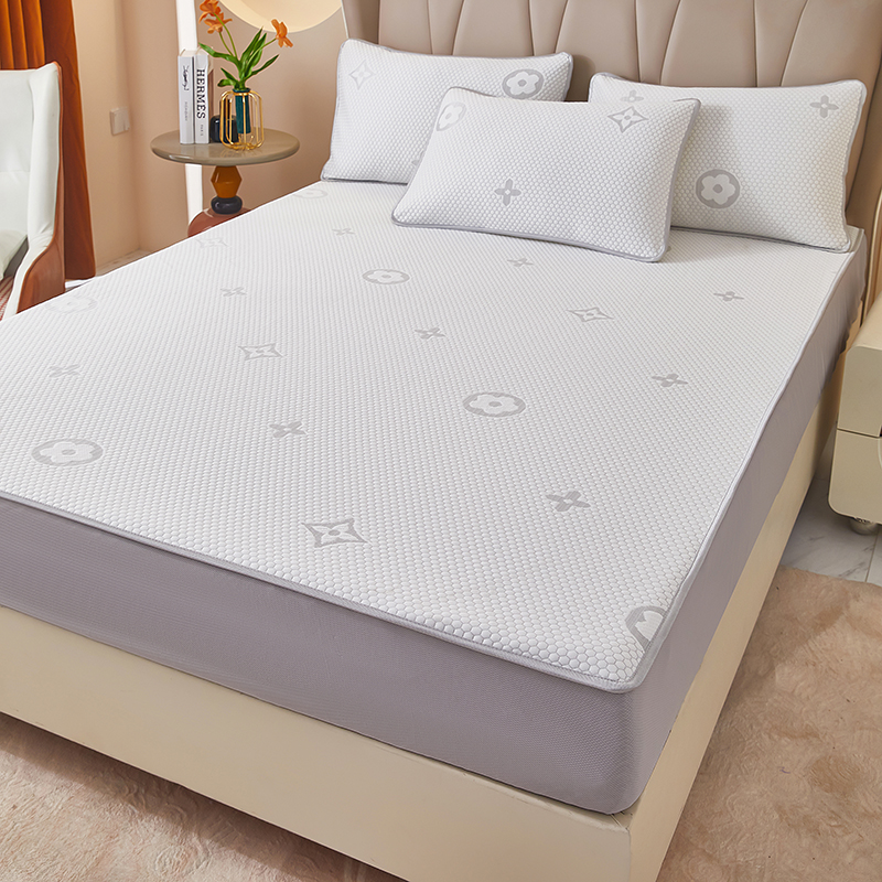 凤杰 2025新款冰豆豆凉豆豆凉席床笠款盖盖毯夏被四件套 四叶草-高级灰,四叶草-高级灰