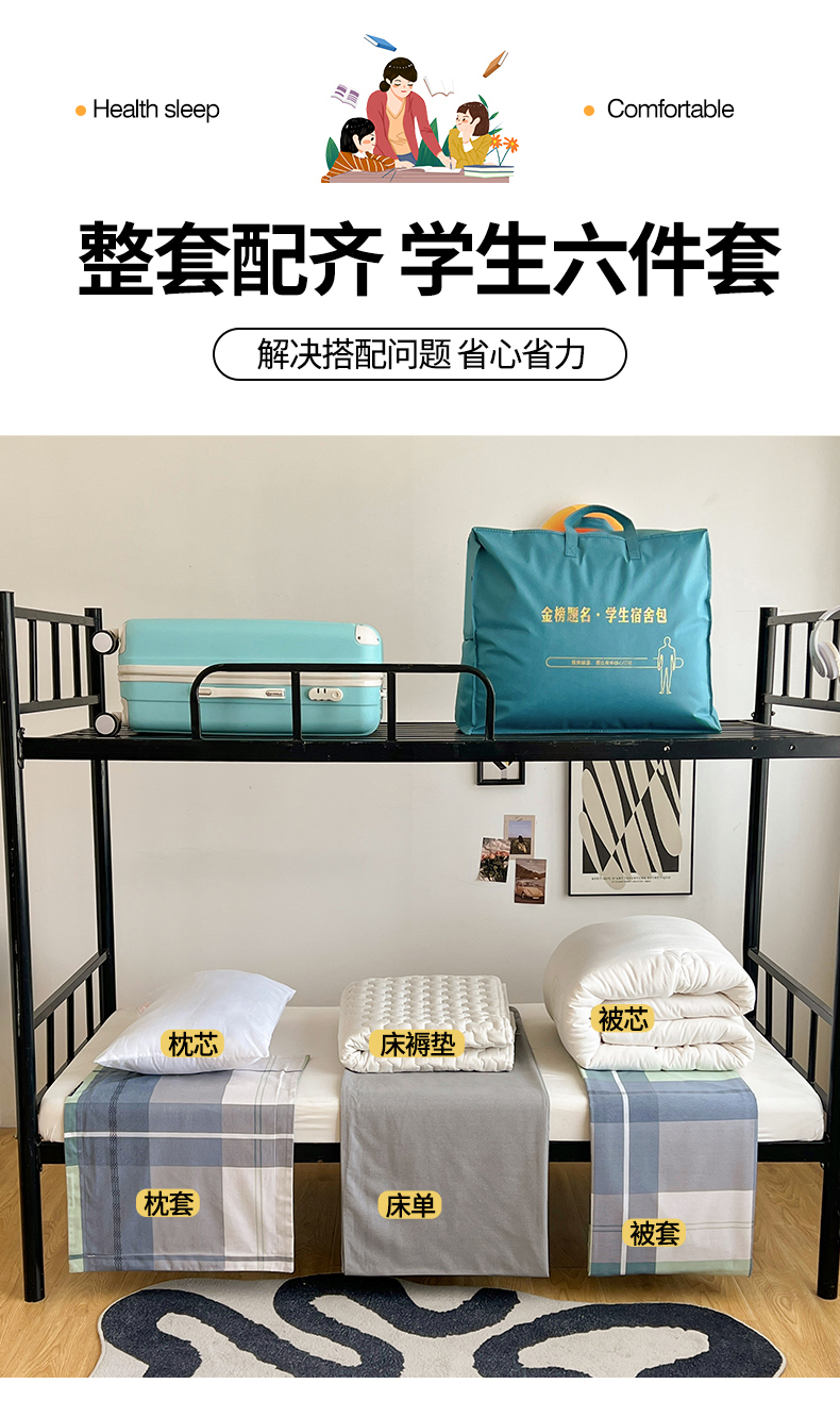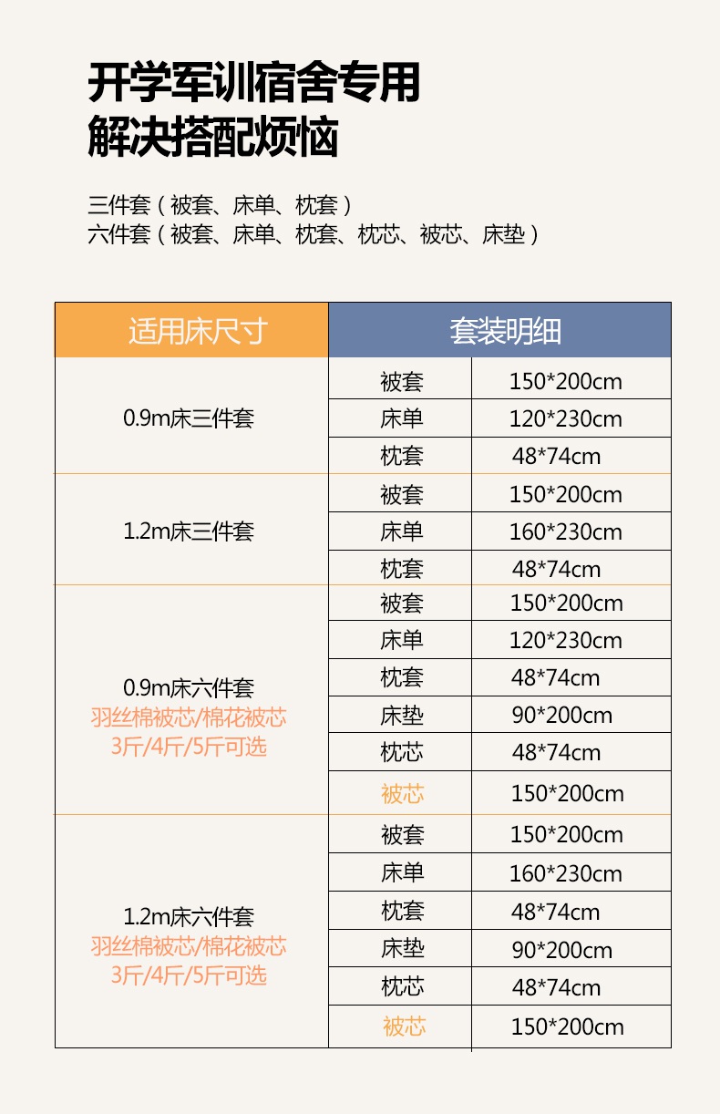 1.2床(三件套+5斤棉被床垫枕芯) | ¥155.00 |
