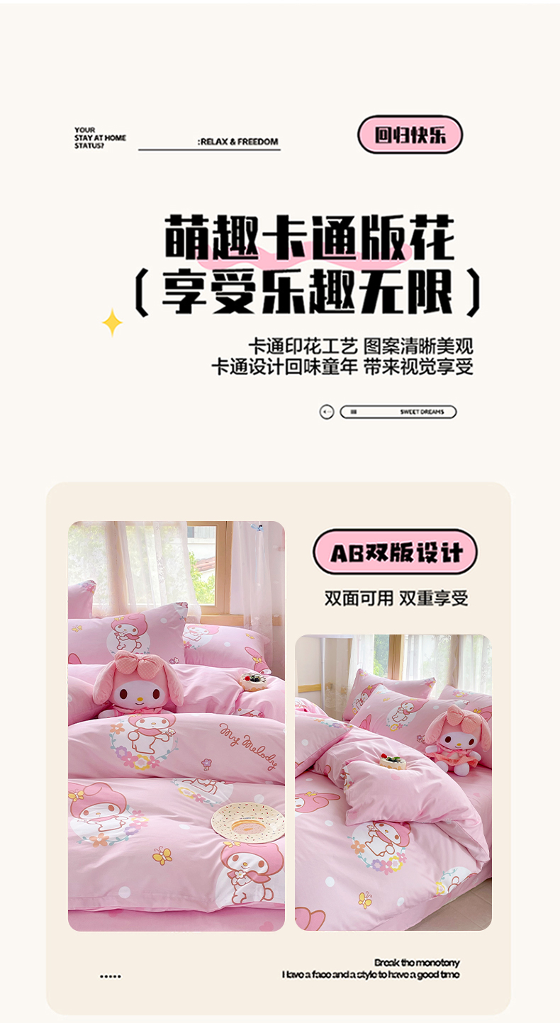 (总)浩诚 2025新款三丽鸥专版全棉磨毛纯棉四件套,美美KT,爱心库洛米,蝴蝶结KT,开心美乐蒂,魔法玉桂狗,女王库洛米,气球KT,条纹玉桂狗,幸福美乐蒂,旋转玉桂狗