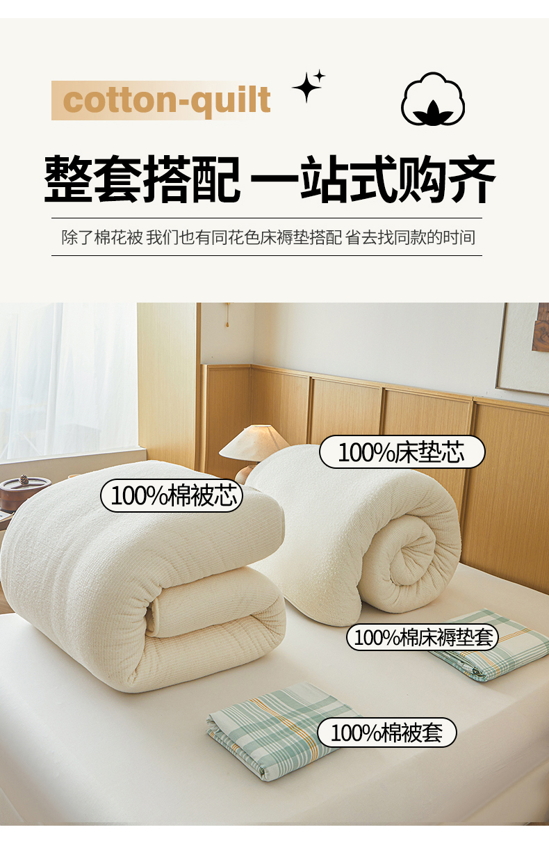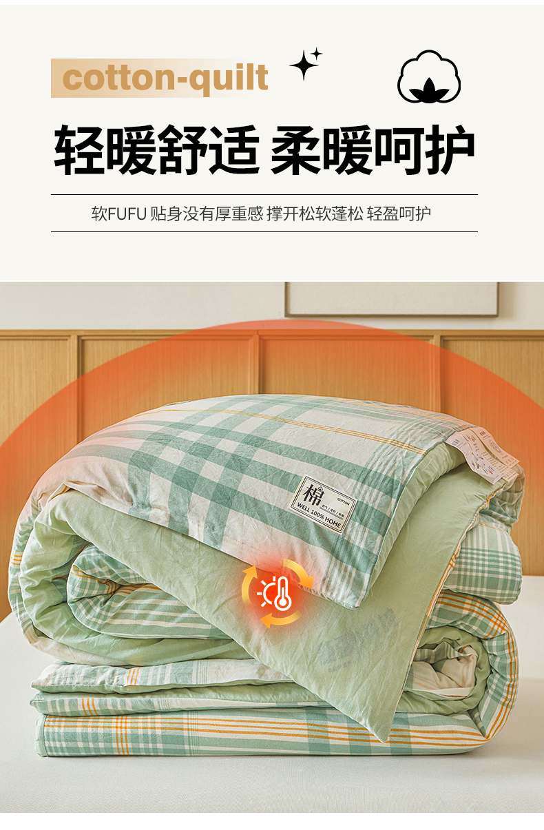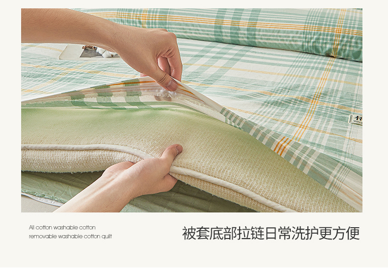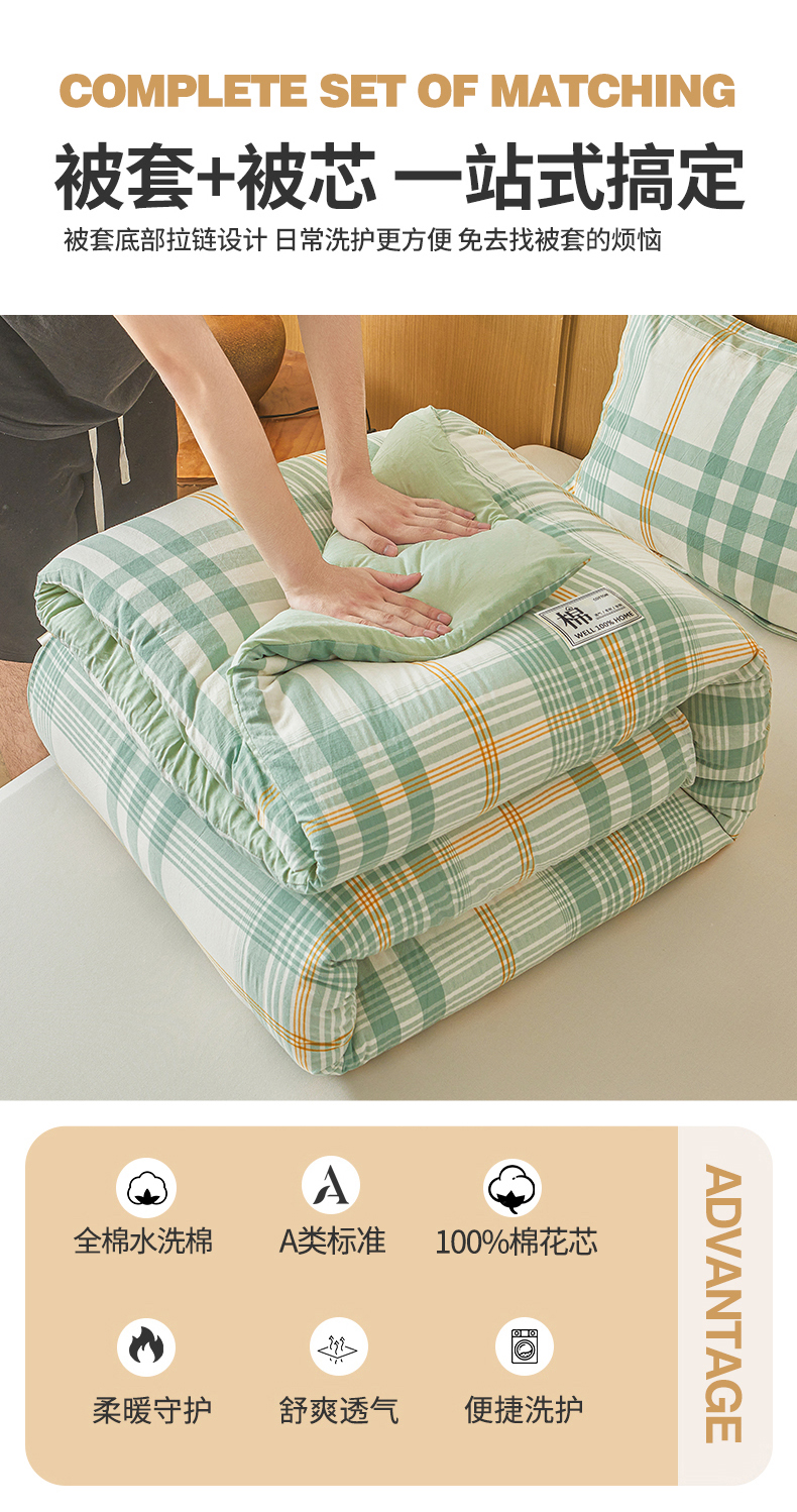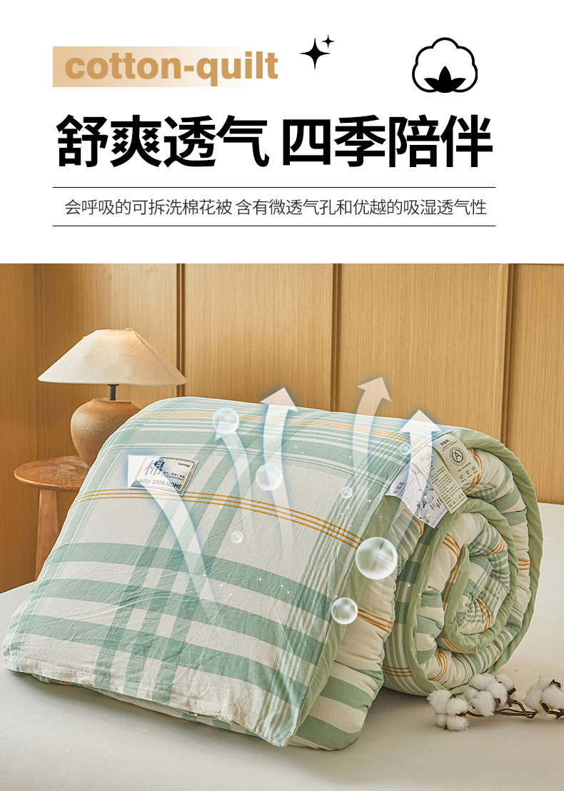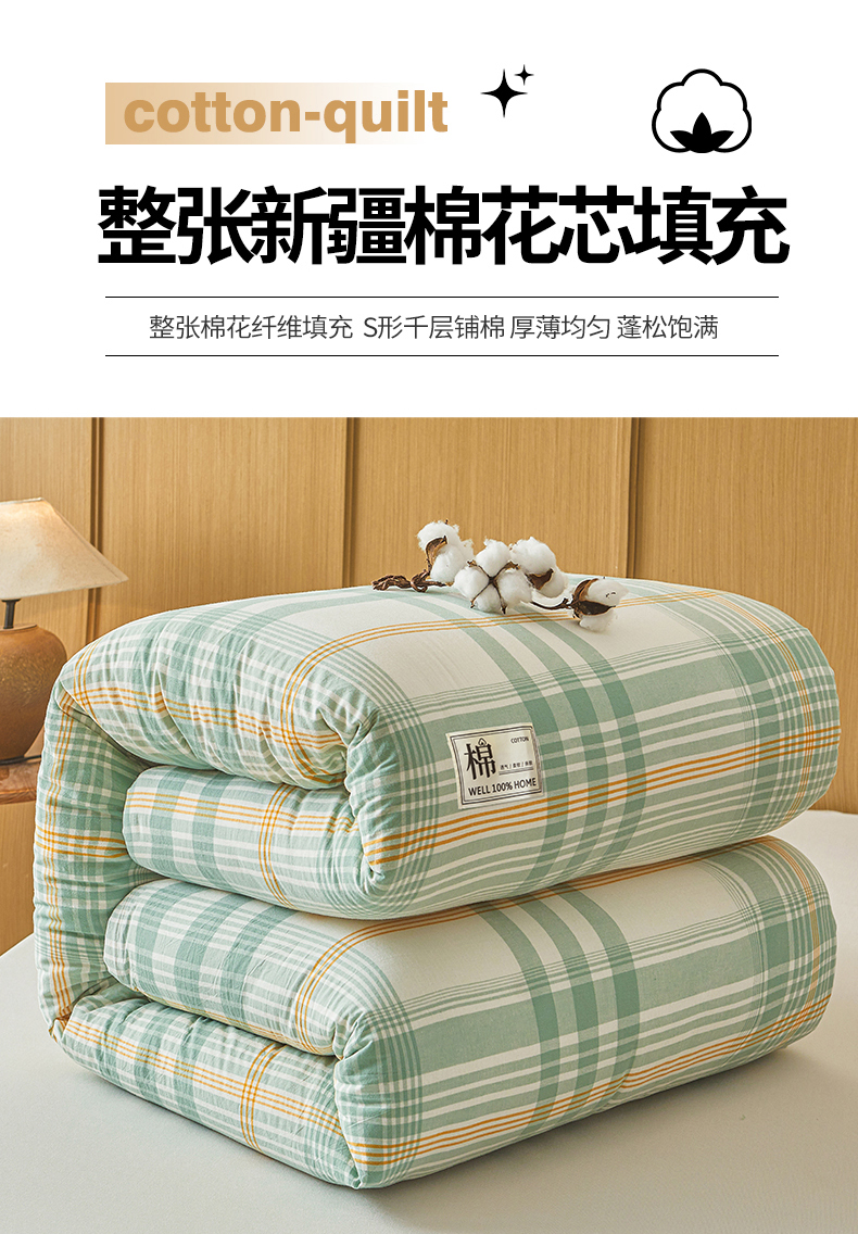 • 91家纺网 家纺一手货源 找家纺 西域种棉人·千百笠 2025新款A类可拆卸里外全棉100%新疆棉花被子冬被全棉单人学生宿舍加厚保暖春 沐绿大格