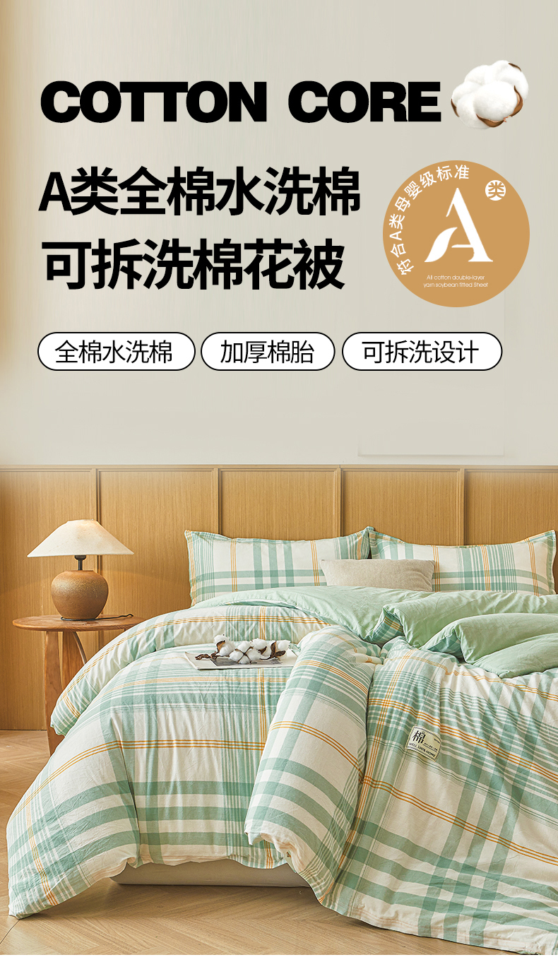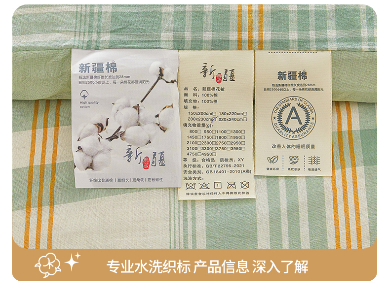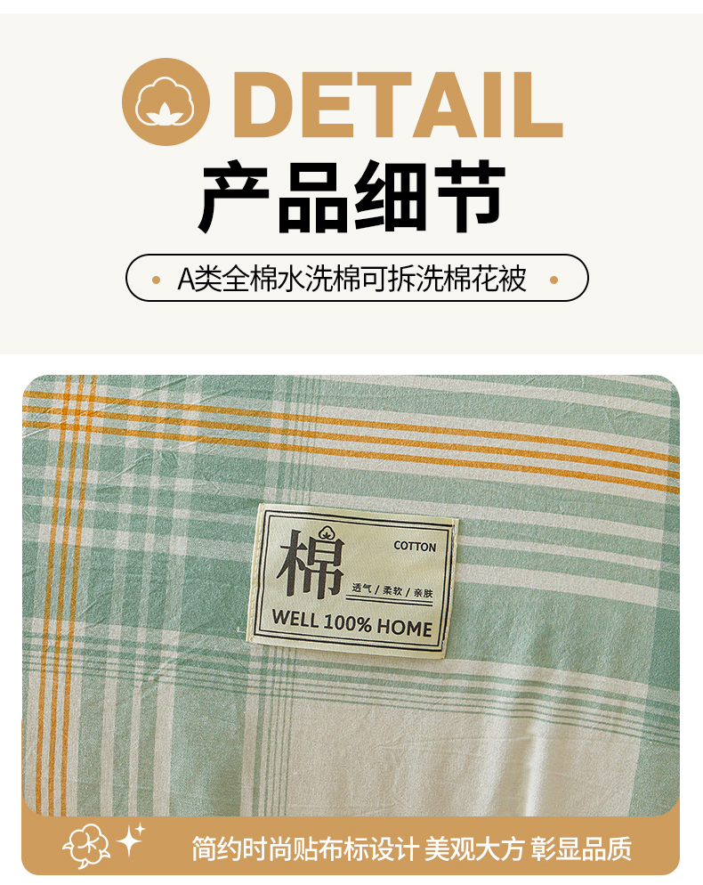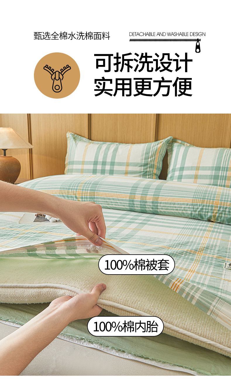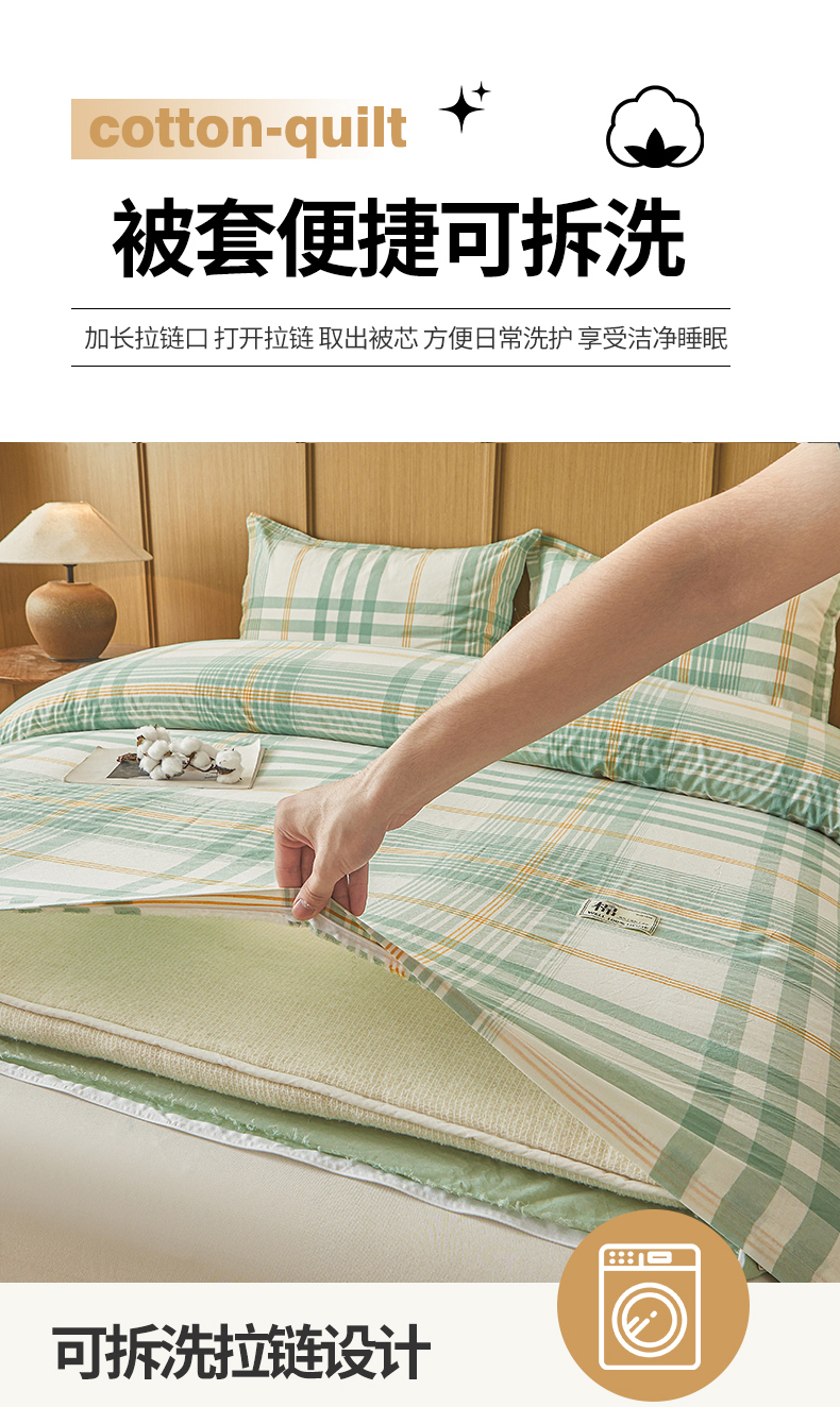 • 91家纺网 家纺一手货源 找家纺 西域种棉人·千百笠 2025新款A类可拆卸里外全棉100%新疆棉花被子冬被全棉单人学生宿舍加厚保暖春 沐绿大格