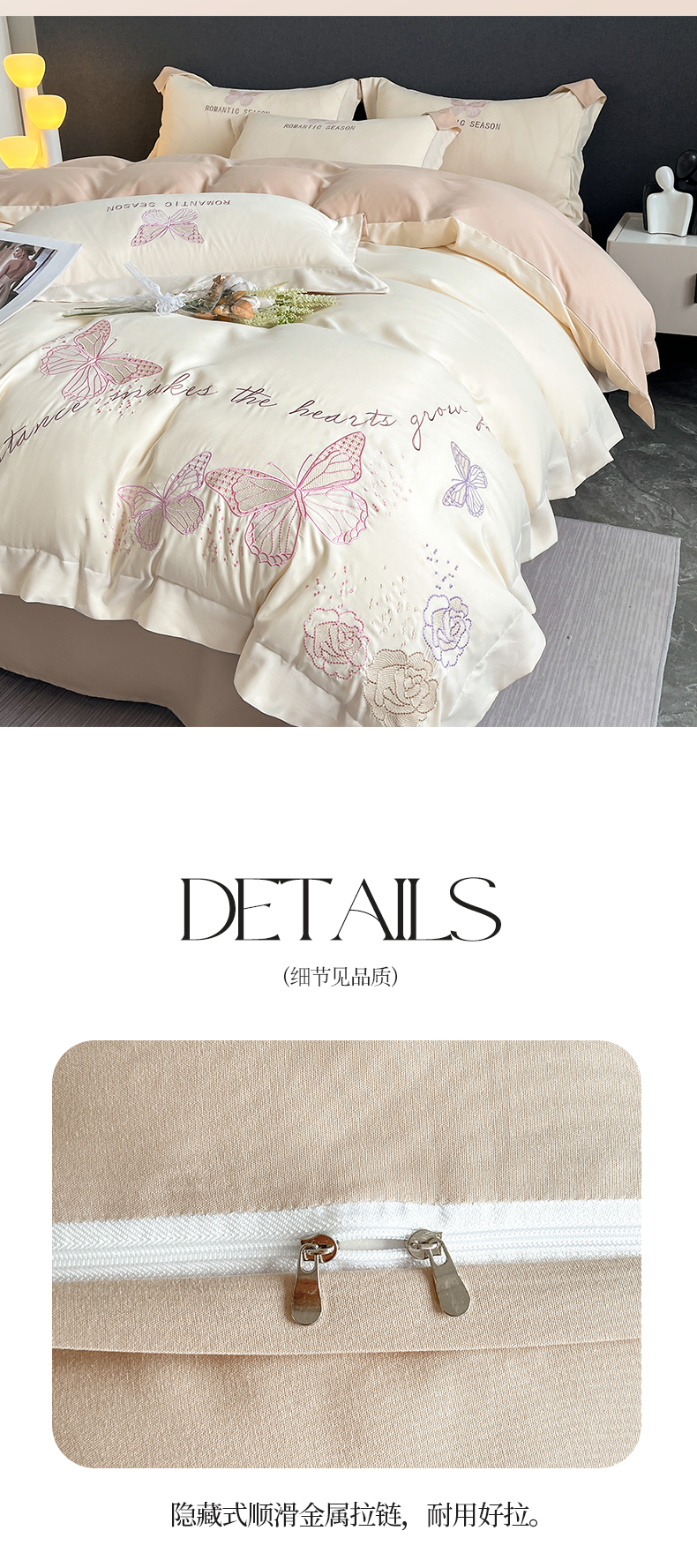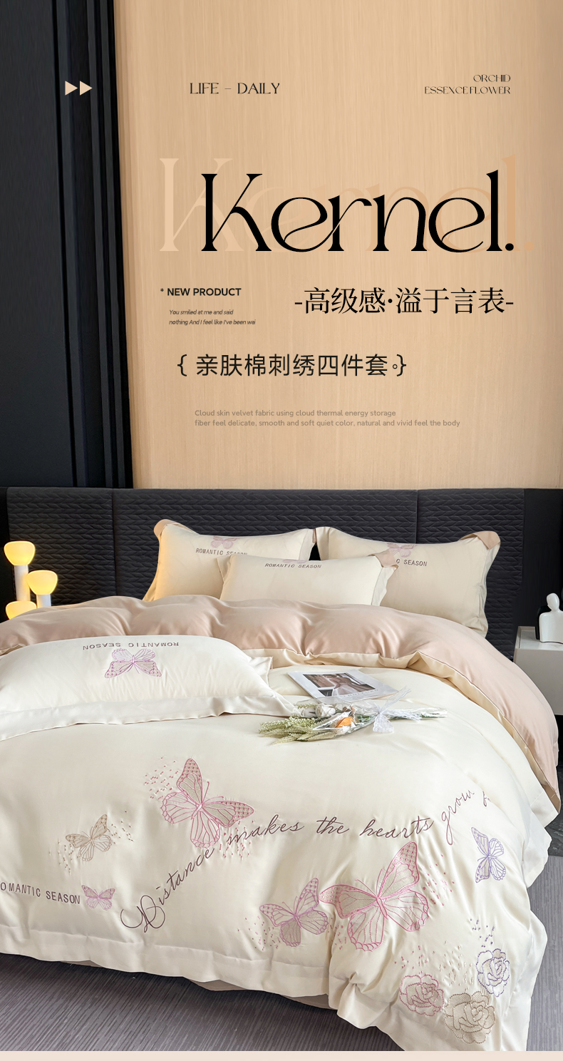 当前位置: 91家纺网 > 商品网购 > 床品套件 > 四件套 > 其它四件套 > 青柚 2025新款梦蝶亲肤棉刺绣四件套(小号不低于98元,标准不低于138,加大不低于148,以此类推,低价必投不撤销) 梦蝶-香槟