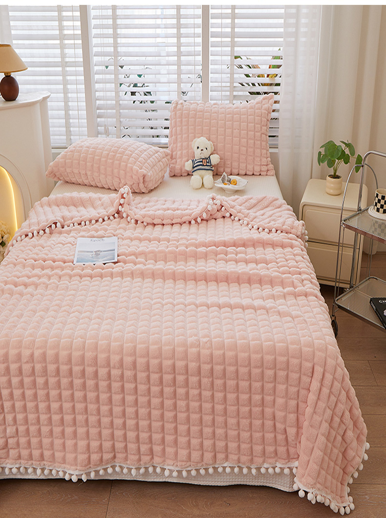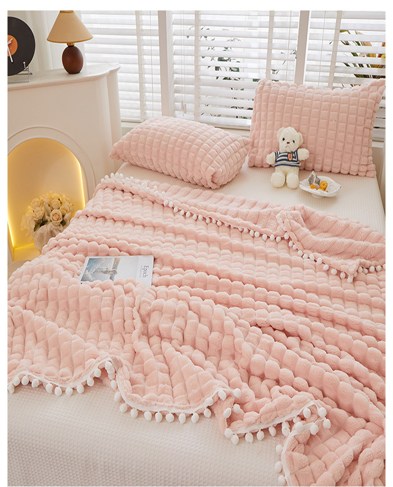 商品名称:楼兰公主2025新款云感梦境毛球毯 胭脂粉
