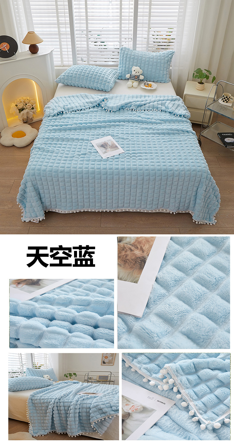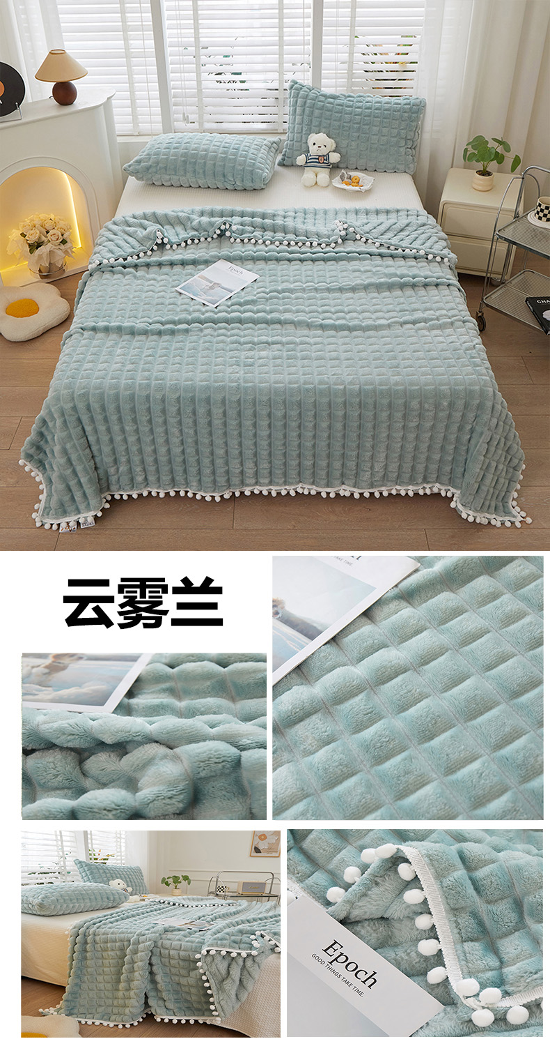 (总)楼兰公主 2025新款竹节绒毛毯,豆沙粉,卡其色,抹茶绿,奶油咖,深灰色,烟雾蓝,组合图仅供参考