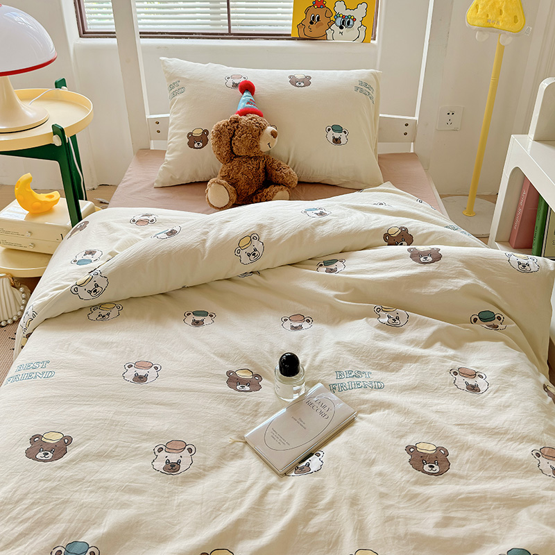 商品名称:海岛哥哥 2025新款云朵水洗棉学生床宿舍上下铺三件套 熊熊公仔