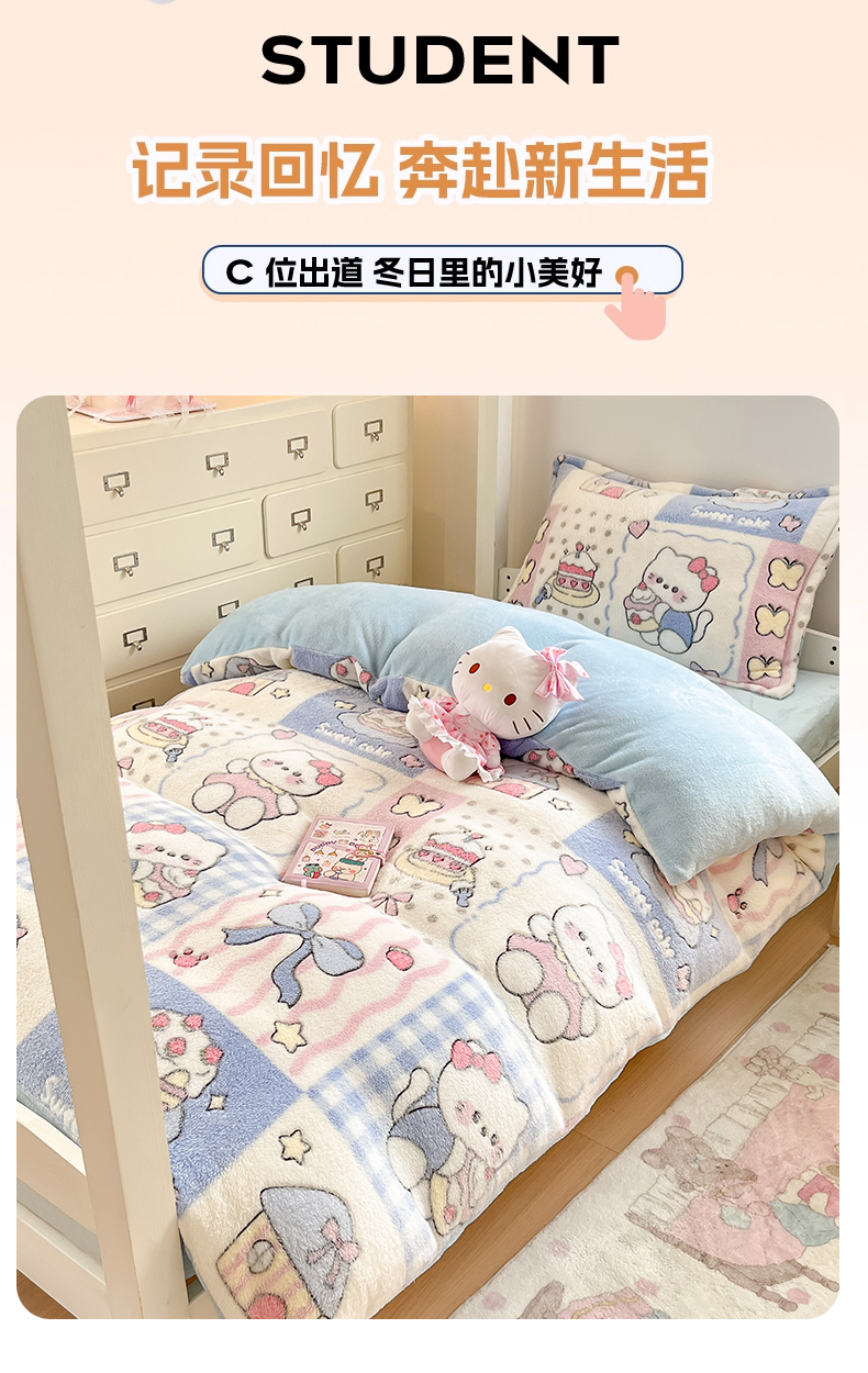 当前位置: 91家纺网 > 商品网购 > 床品套件 > 四件套 > 其它四件套 > 川悦生活 2025新款立体雪花绒印花四件套学生床系列二场景一 小喵甜心