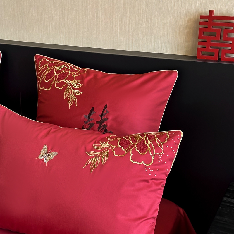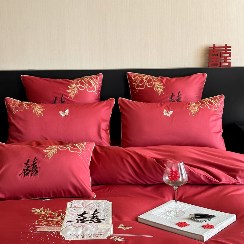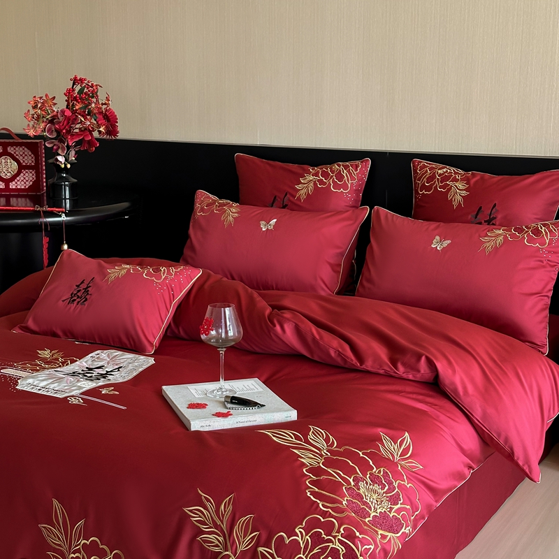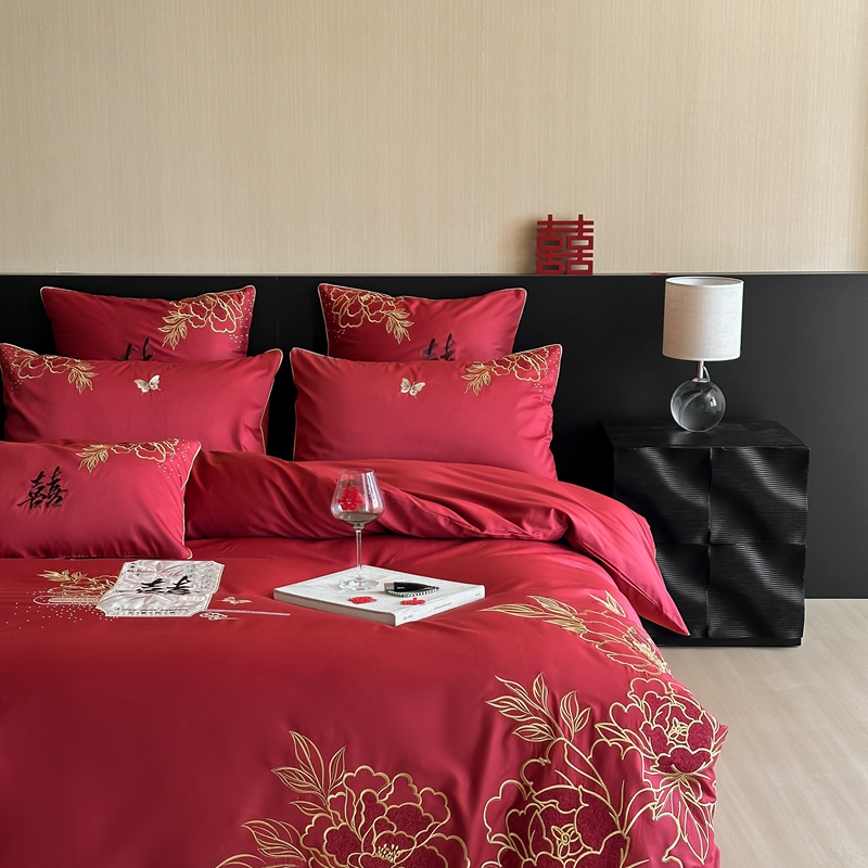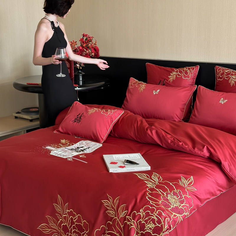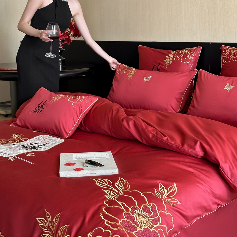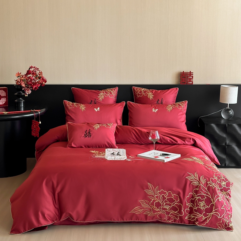 (总)西西家居 2025新款大红婚庆100支长绒棉纯棉四件套-富贵花开