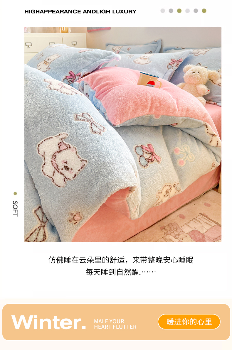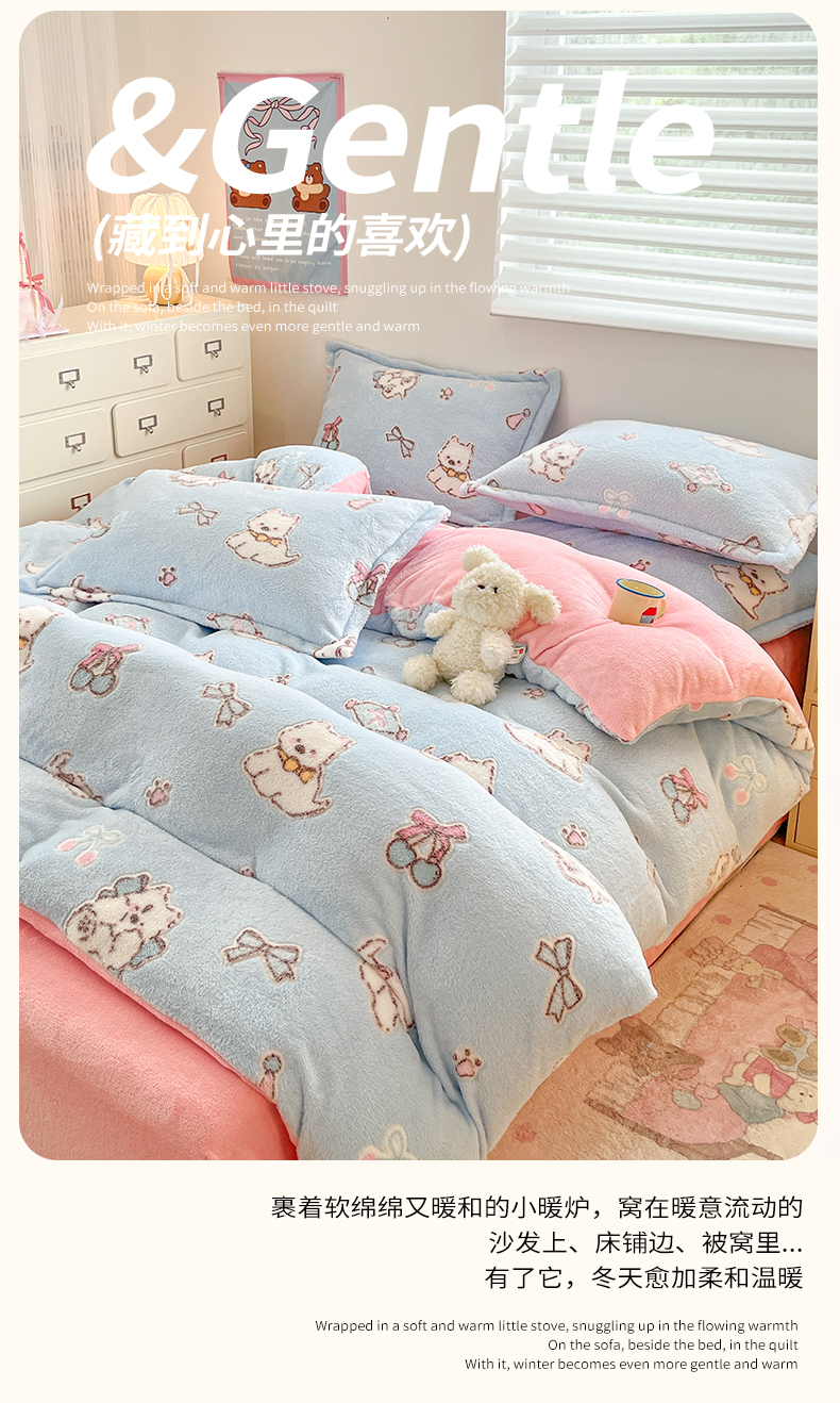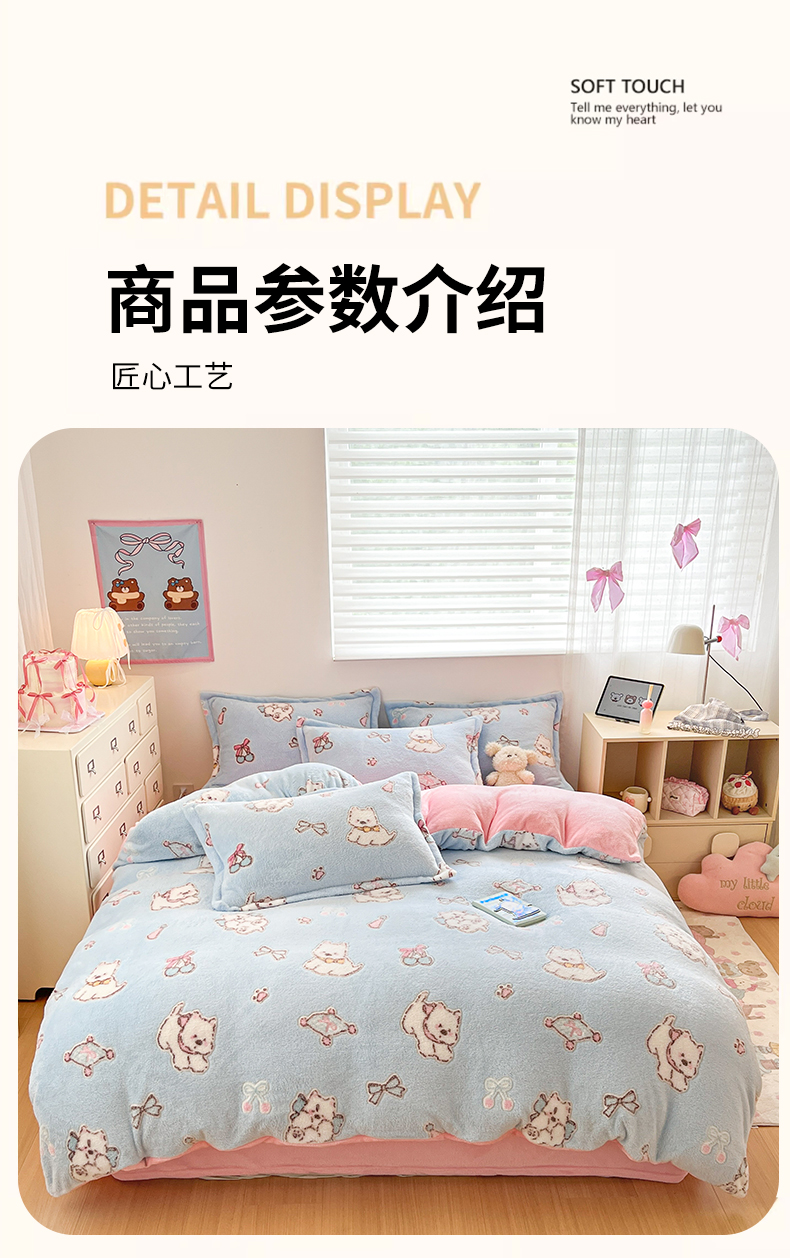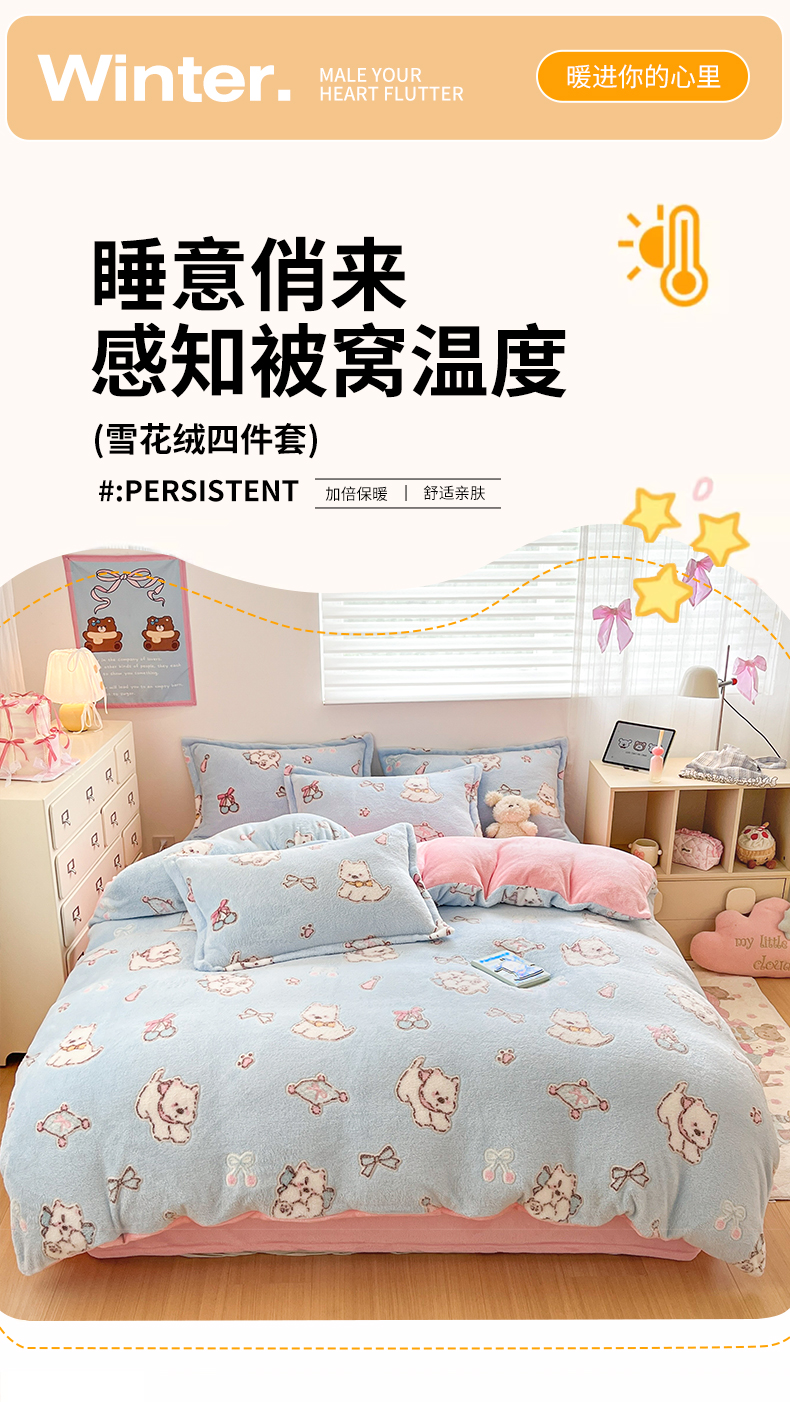 当前位置: 91家纺网 > 商品网购 > 床品套件 > 四件套 > 其它四件套 > 川悦生活 2025新款立体雪花绒印花大床四件套系列二场景一 奶蓝小汪粉