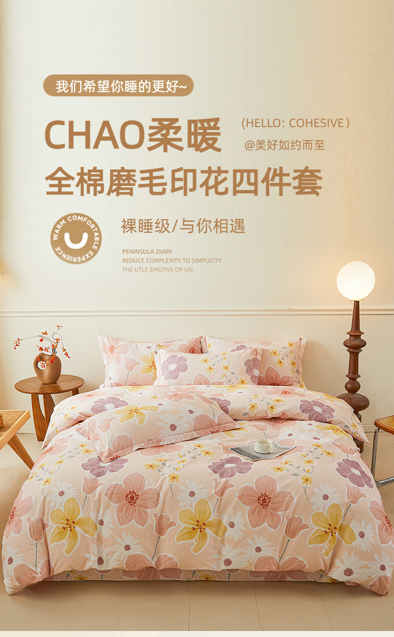 当前位置: 91家纺网 > 商品网购 > 床品套件 > 四件套 > 全棉普通四件套 > 名优家纺 2025新款全棉纯棉磨毛数码印花四件套 锦卉