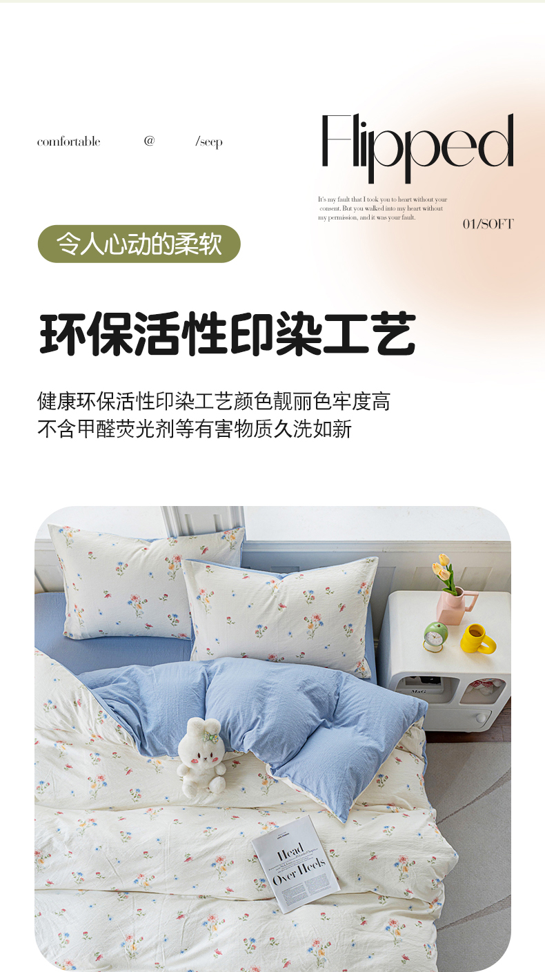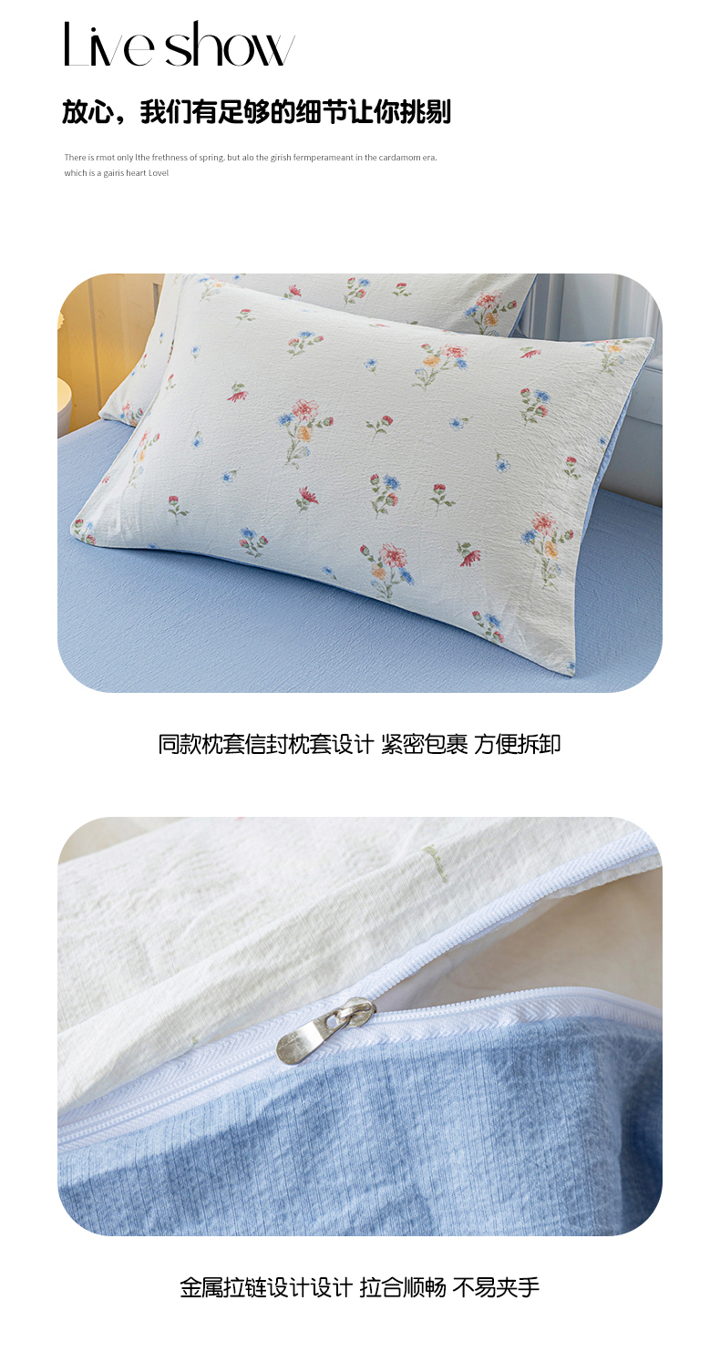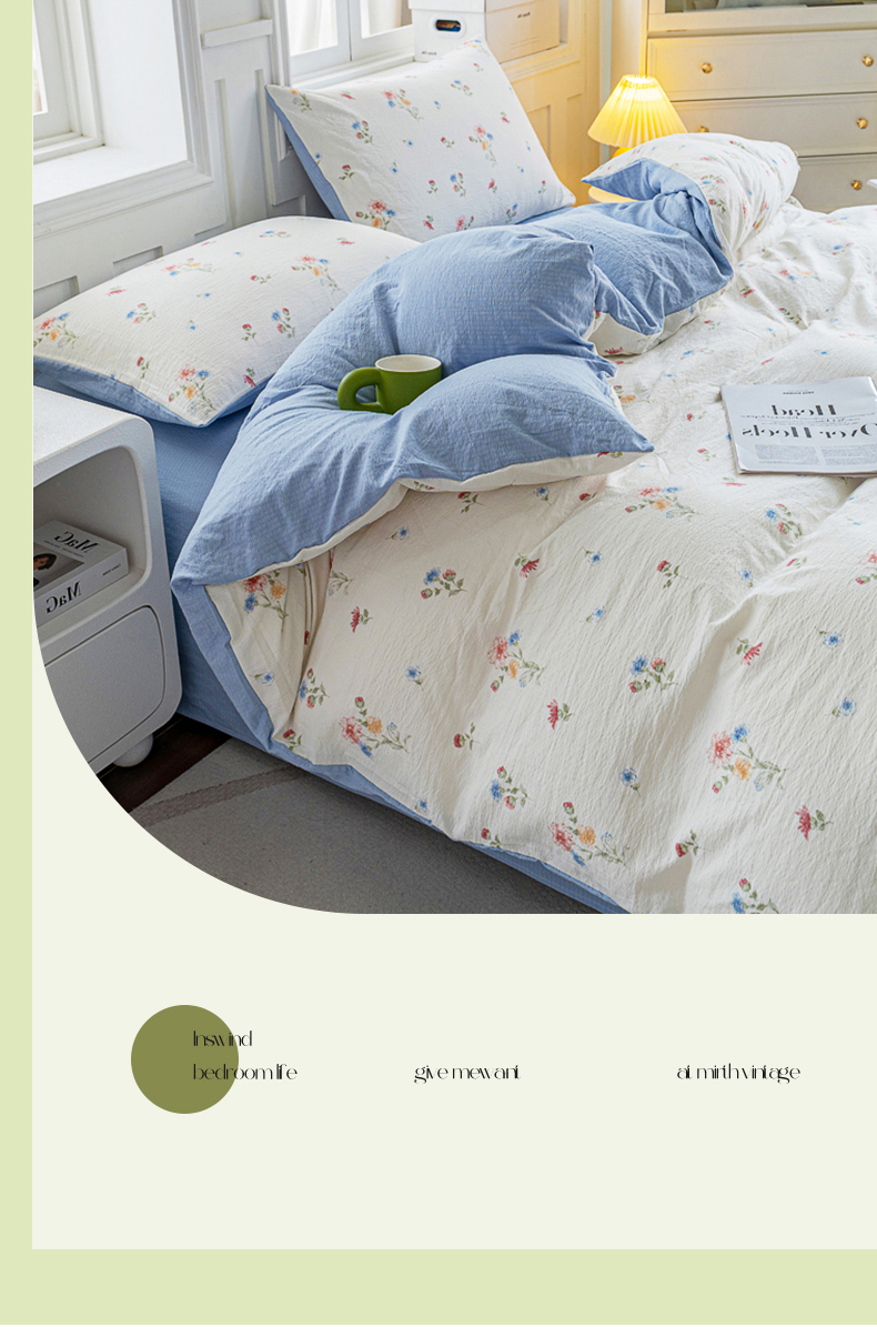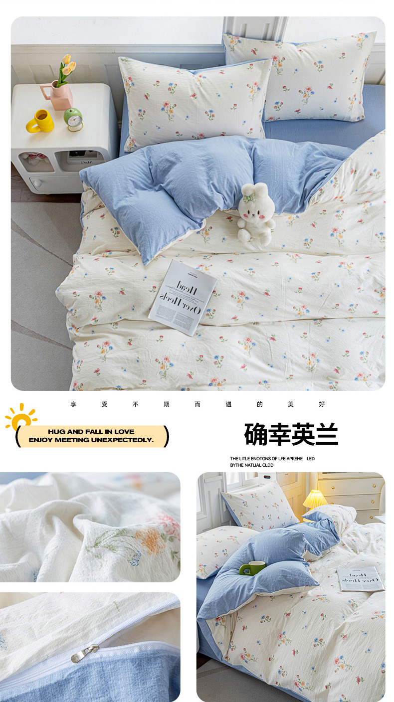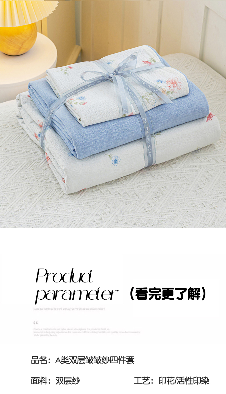 • 91家纺网 家纺一手货源 找家纺 奇丝雅 2025新款A类有氧超柔云感双层纱皱皱纱学生宿舍三件套家用四件套单被套 确幸英兰