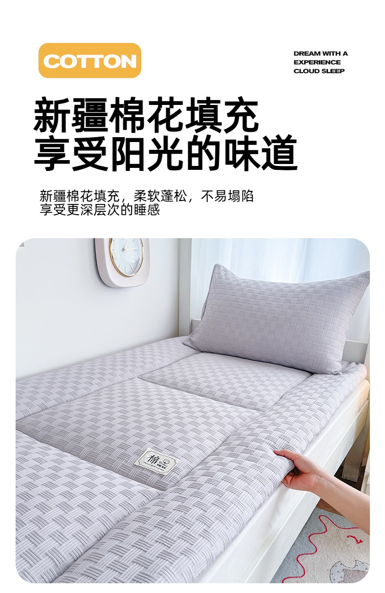 商品名称:美宜家 2025新款无印风学生棉花床垫母婴类新疆棉花床垫子软垫家用宿舍床褥垫被单双人出租屋铺底 良品灰
